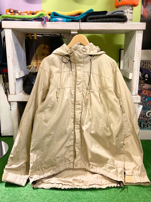 2000s STUSSY ステューシー テクニカル フード コットンシェルジャケット 【L】 色はアイボリーベージュ SHELL:コットンポリ LINING:ナイロン フードとウエスト、裾にドローコードで調整可能 サイズ表記:不明 実寸:L 裄丈 90cm 身幅 63cm 着丈 75cm 袖丈 56cm(脇〜) コンディション:若干着古感、薄汚れありますがキレイな良い状態です。カラーリング、デザインともに、とてもカッコイイです。