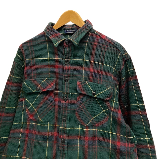 90s-00s G.H.BASS&CO. チェック サーマルシャツ【L】グリーン×レッド×イエロー×ブルー×ブラック