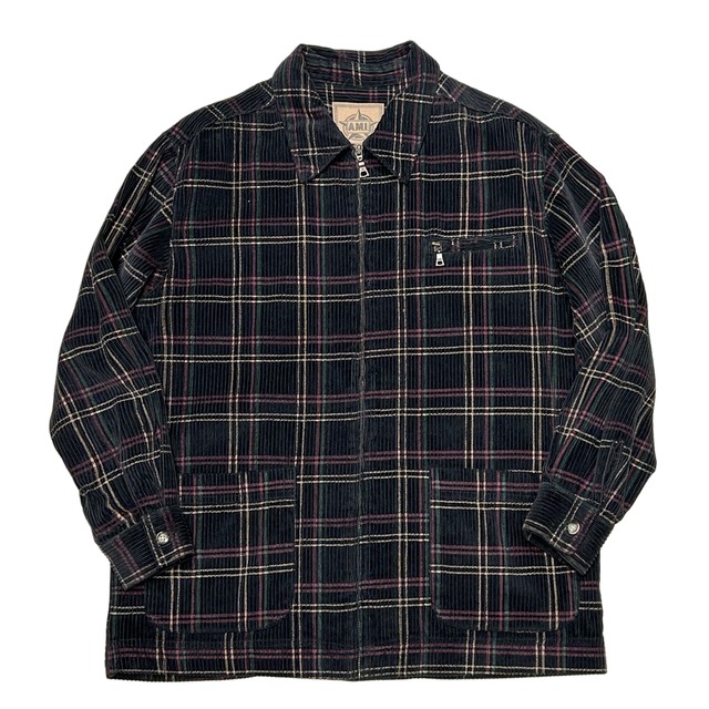 90s A.M.I. ジップシャツ 太畝 コーデュロイ ブラック【L】