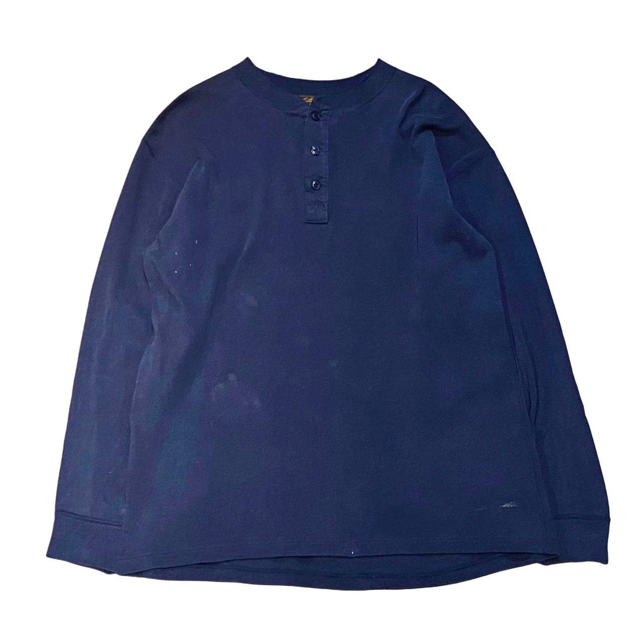 80s EDDIE BAUER エディーバウアー ヘンリーネック 長袖 カットソー【L】ネイビー