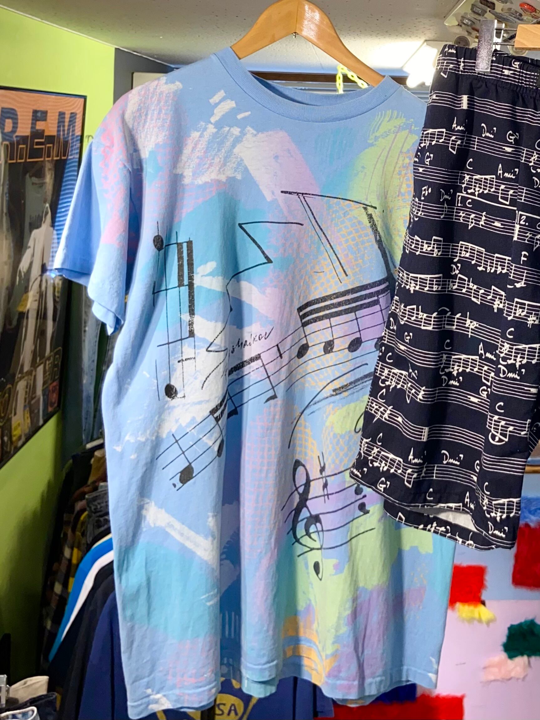 マジアートしてるぅ 90s モダンアート 抽象画 アート 楽譜 Tシャツ シングルステッチ【L】MADE IN USA