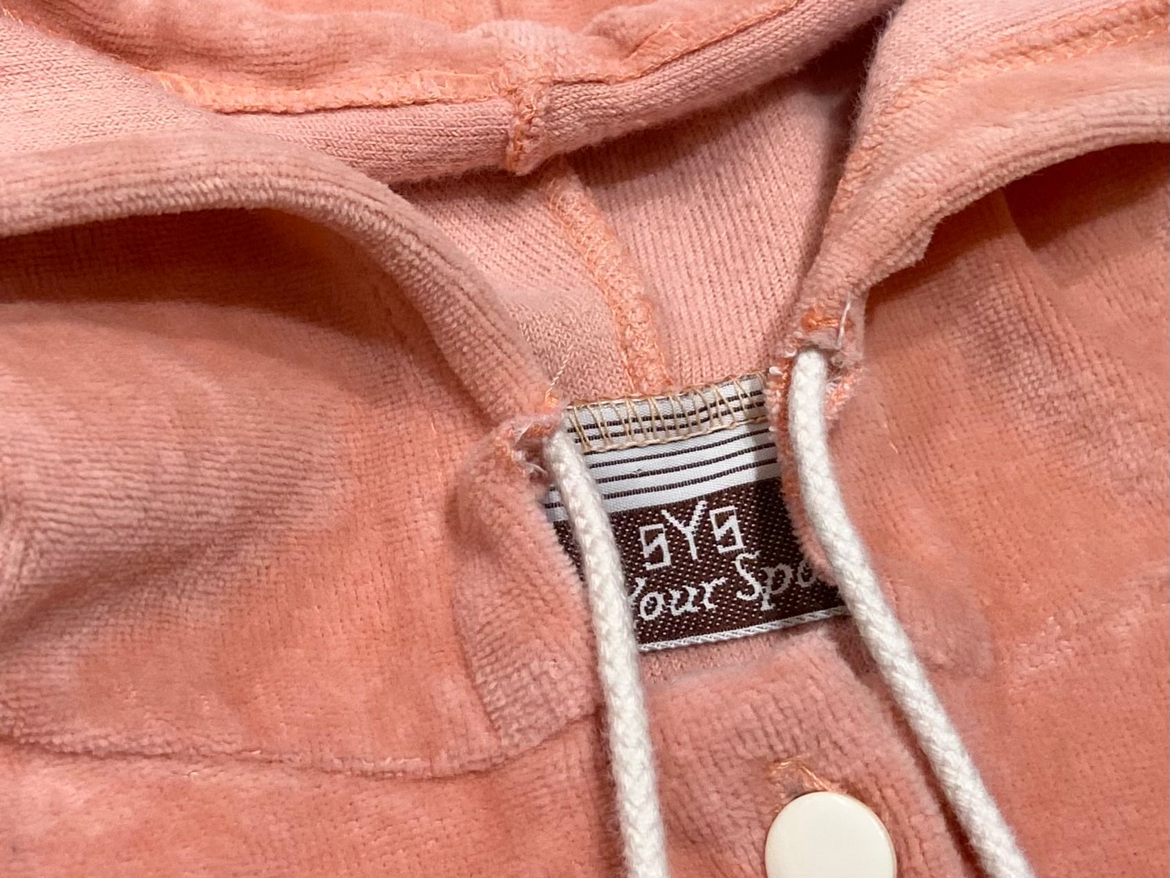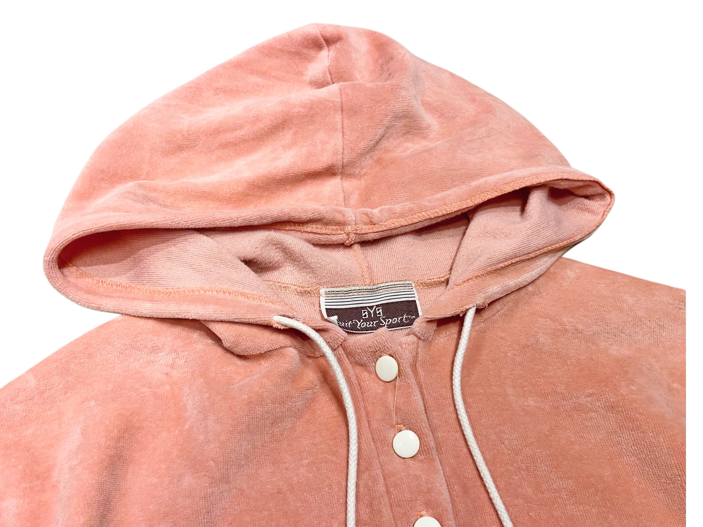 抜きに出たオシャレ感 90s SYS suit your sportベロア フーディー パーカー【M】コーラルピンク×ホワイト