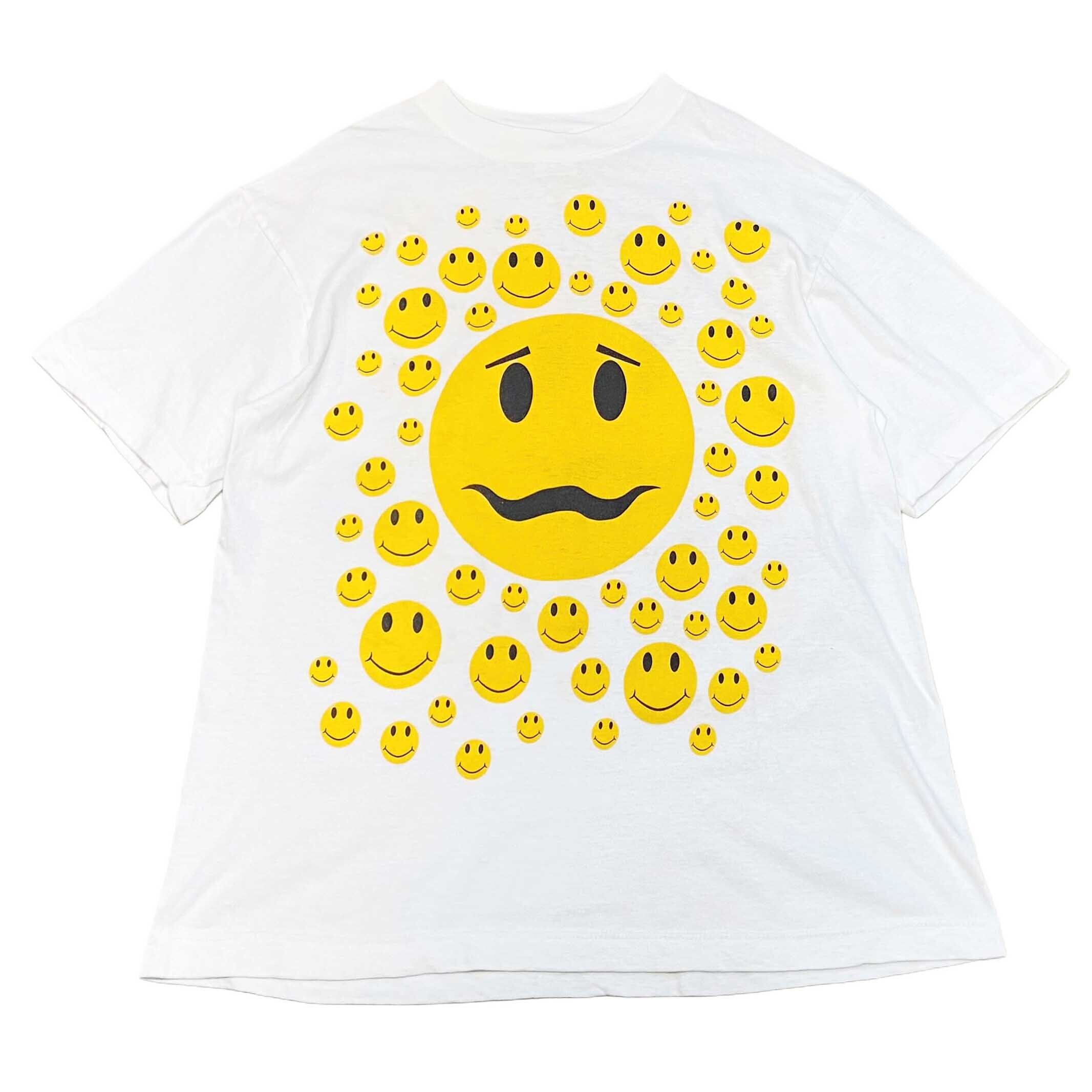 90s 多すぎ スマイル SMILE ニコちゃん だらけ Tシャツ【XL】