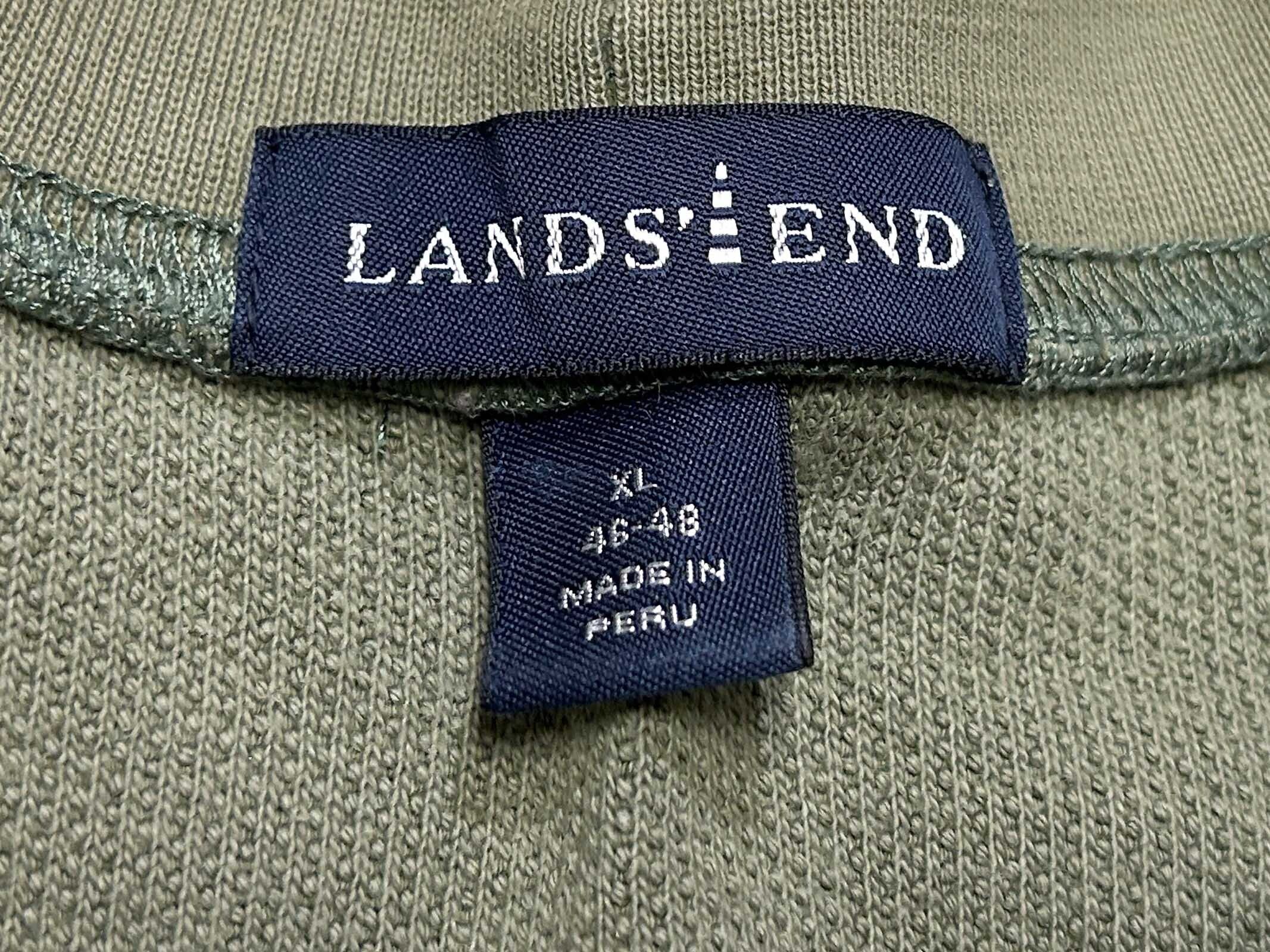 2000s LANDS' END ランズエンド 前V 鹿の子 コットン スウェット ウグイス【XL】