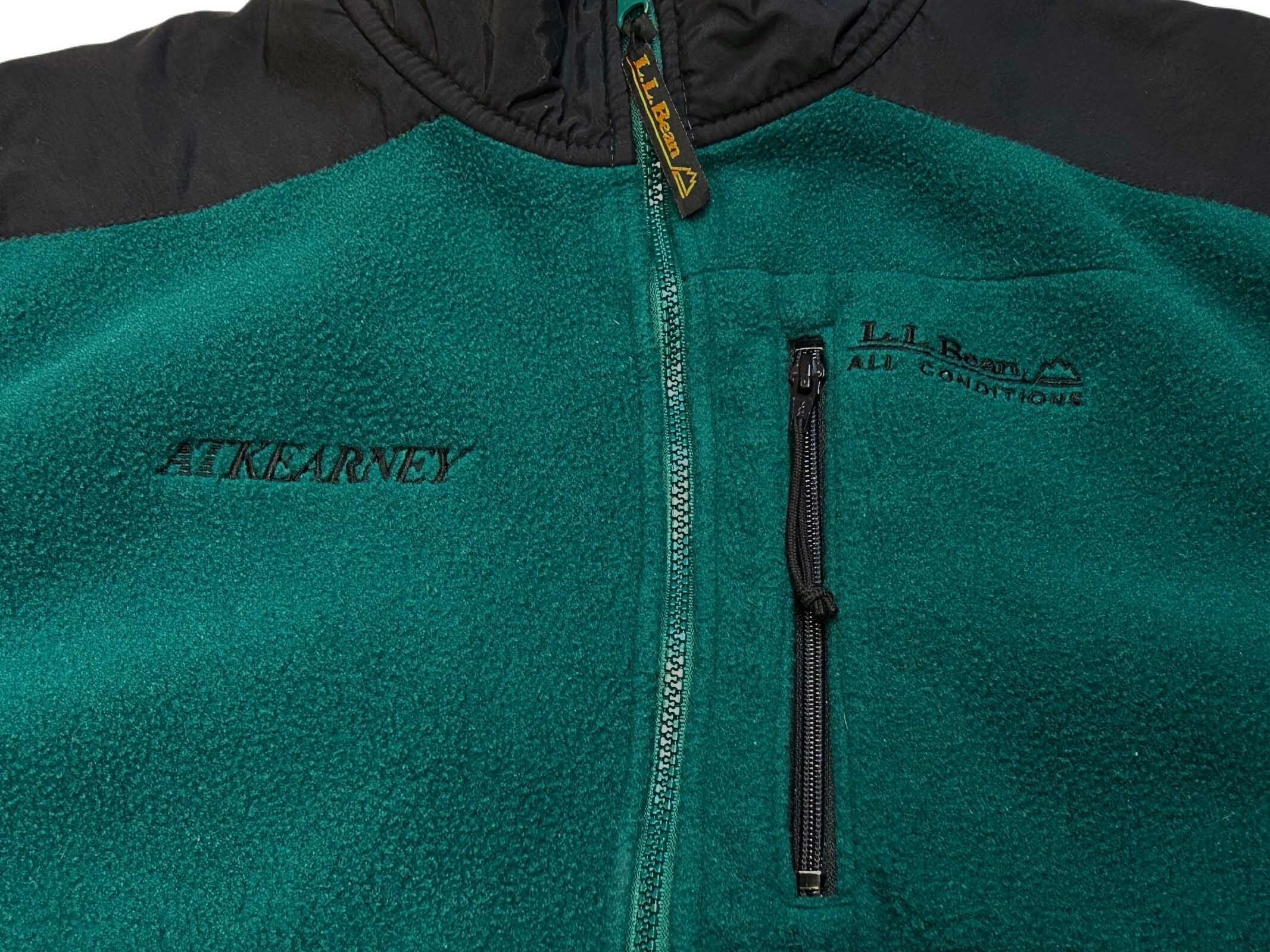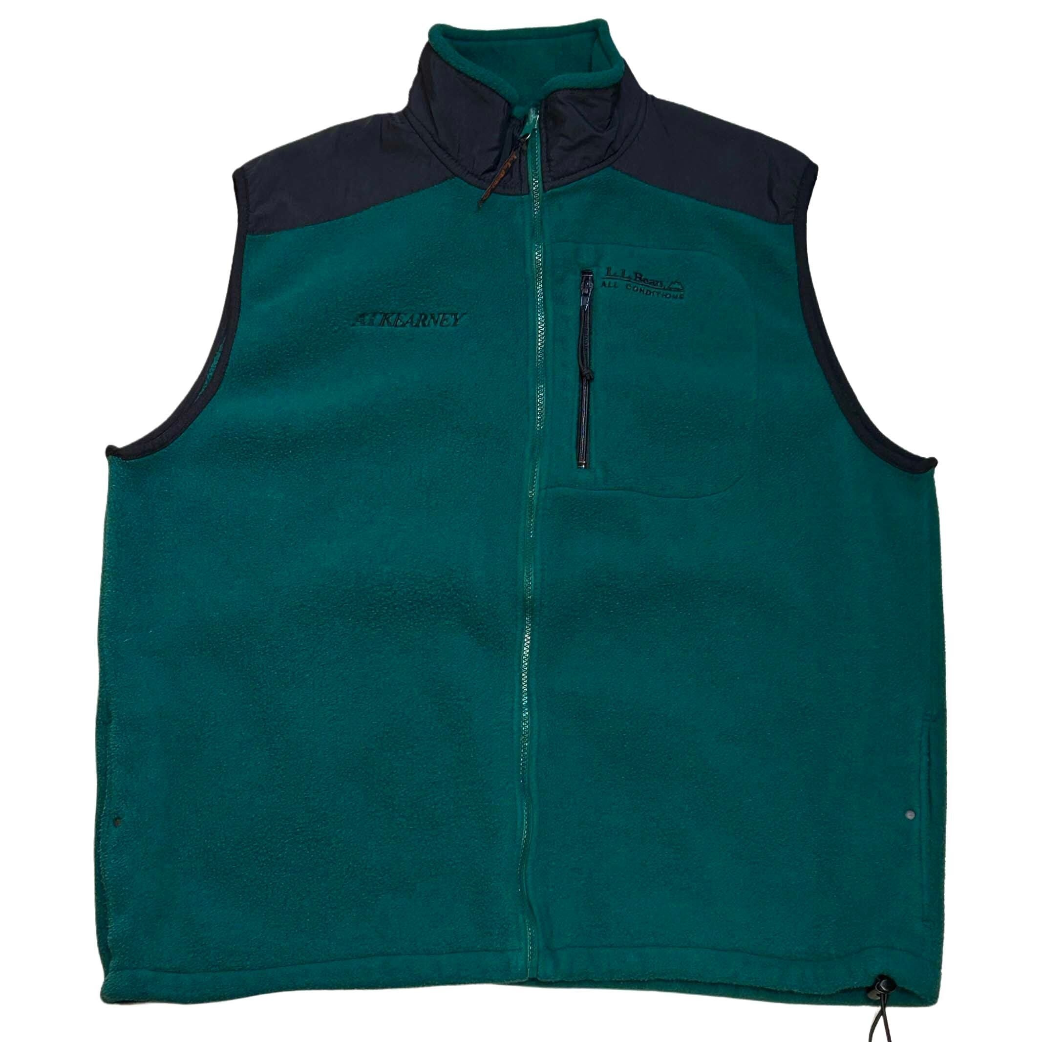 80s エルエルビーン L.L.BEAN ALL CONDITIONS "ATKERNEY" 企業 刺繍 フリース ベスト【XL】グリーン×ブラック