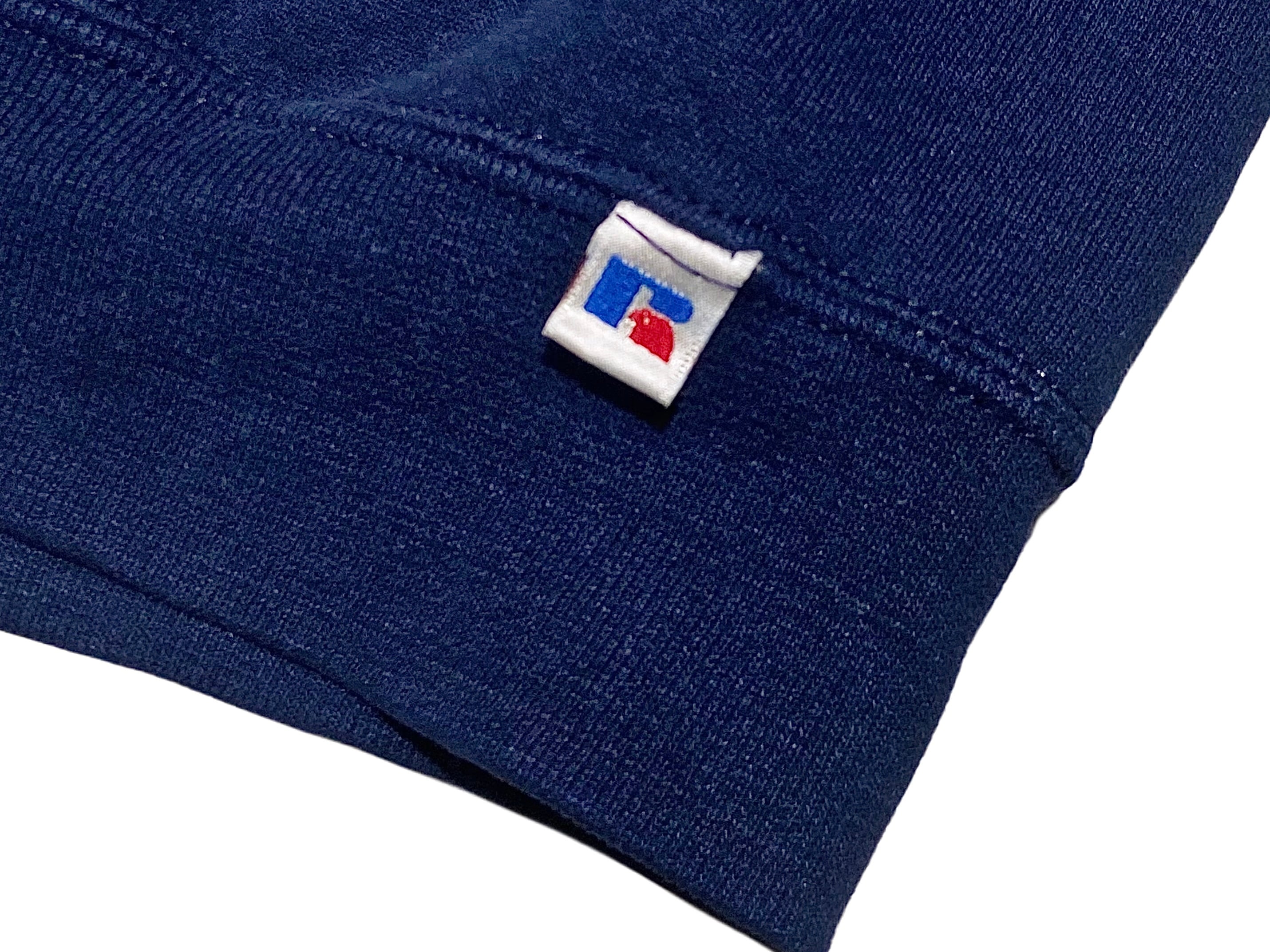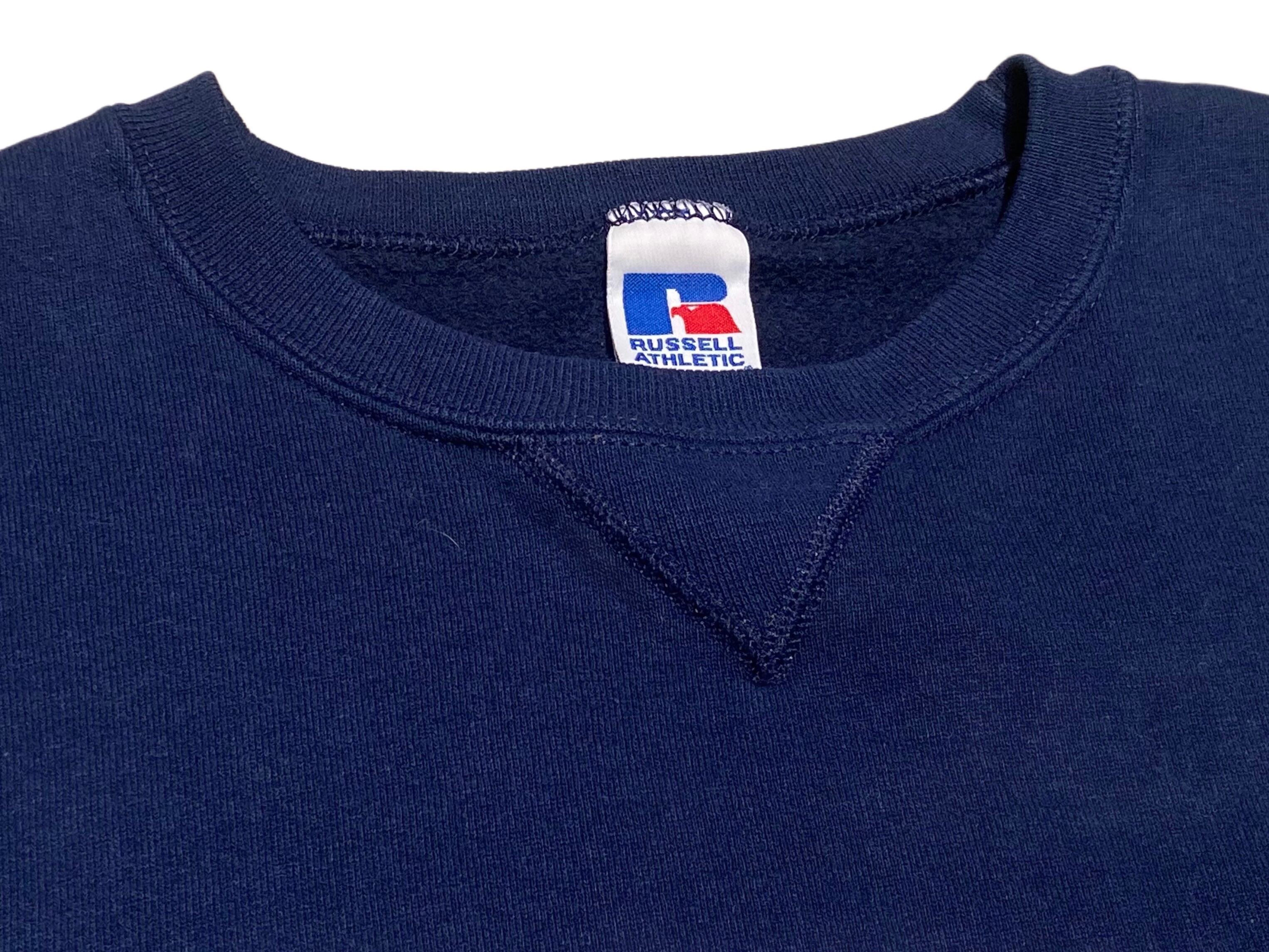 90s RUSSELL ラッセル 前V 無地 ロゴ刺繍 スウェット ネイビー【L】 MADE IN MEXICO