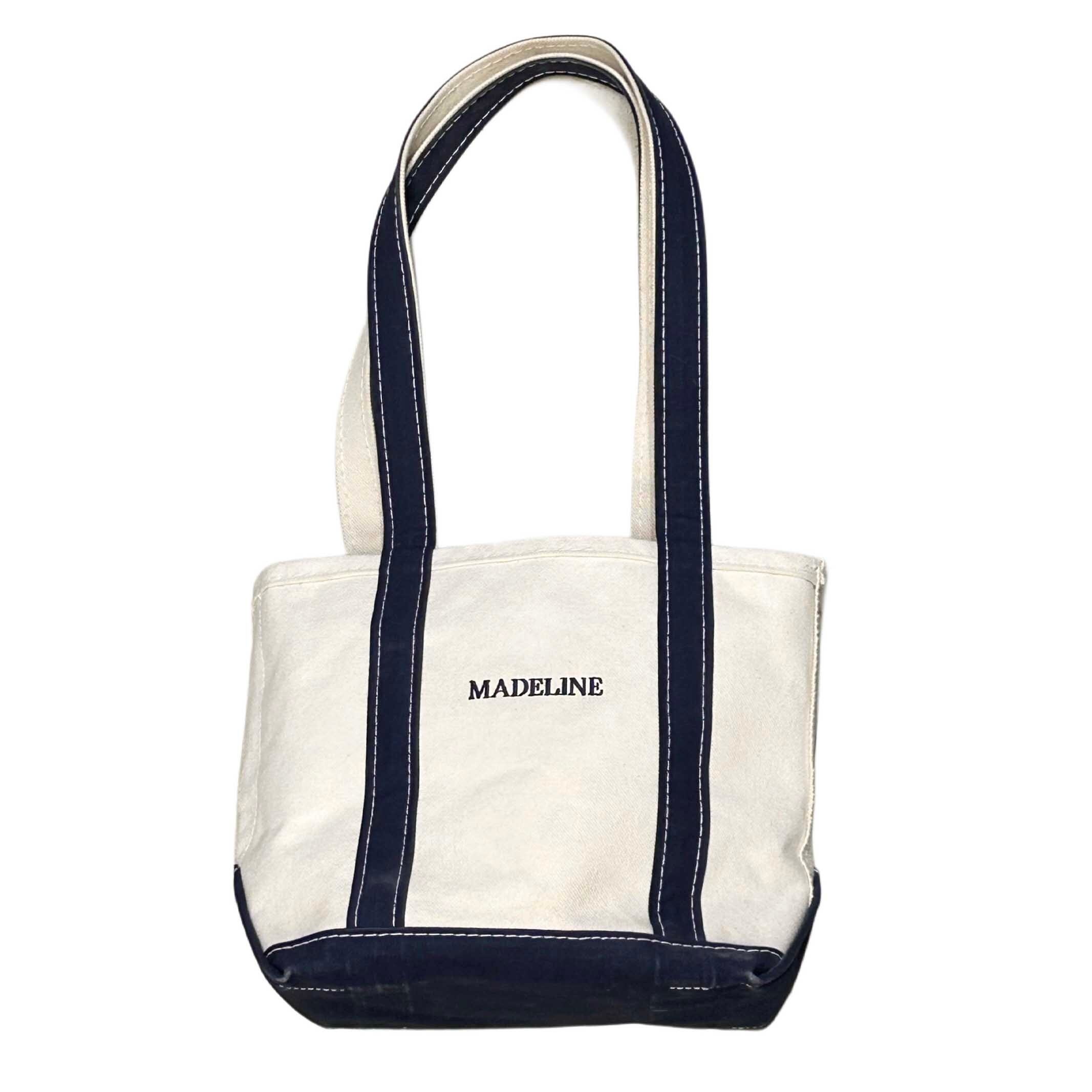 L.L.BEAN エルエルビーン MADELINE 刺繍 トートバッグ ホワイト/ネイビー MADE IN USA