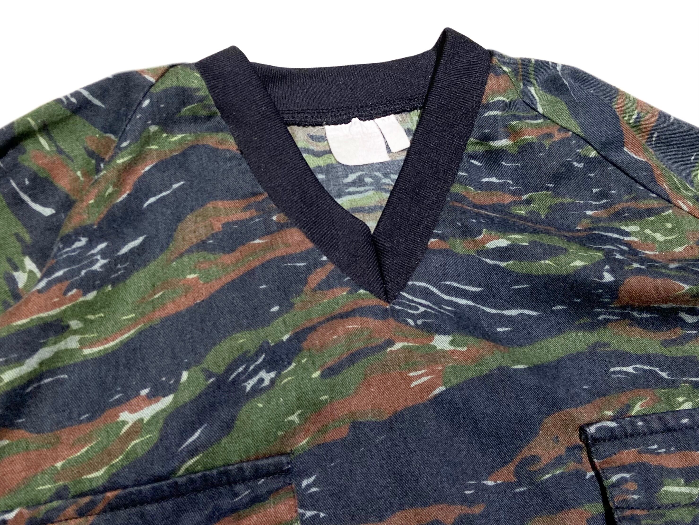 90s CORE タイガーストライプ カモフラ Vネック プルオーバー【XL】