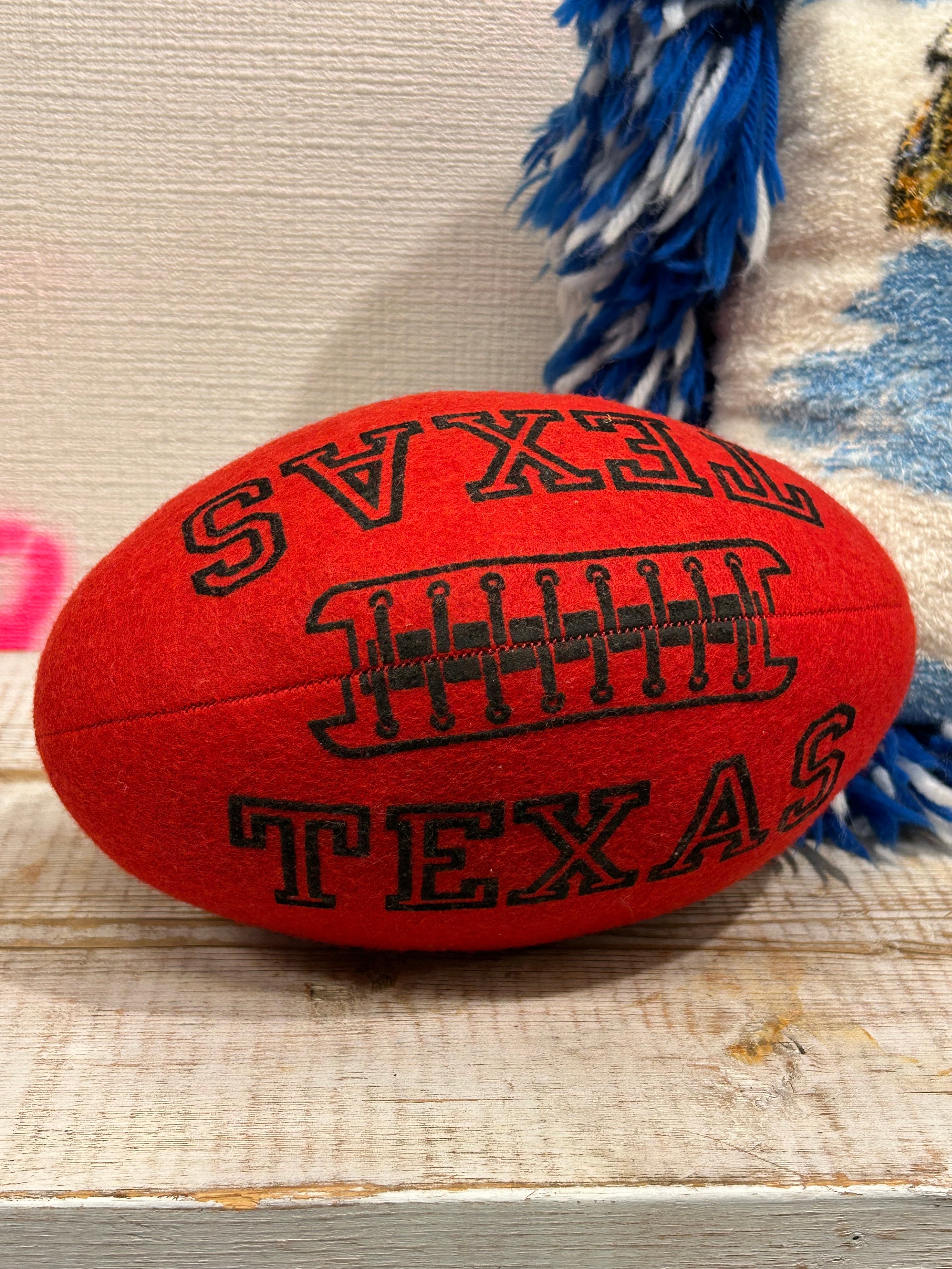 フェルト生地で作られたフットボール型マスコットドール