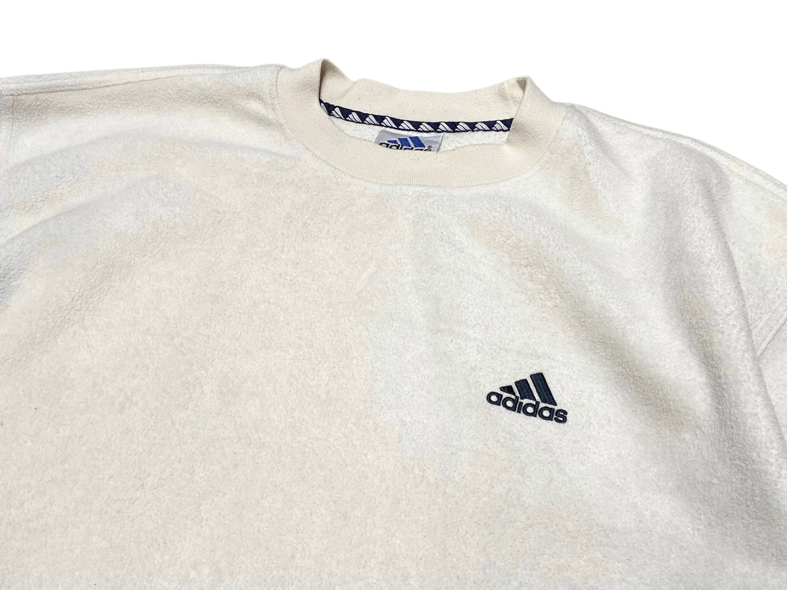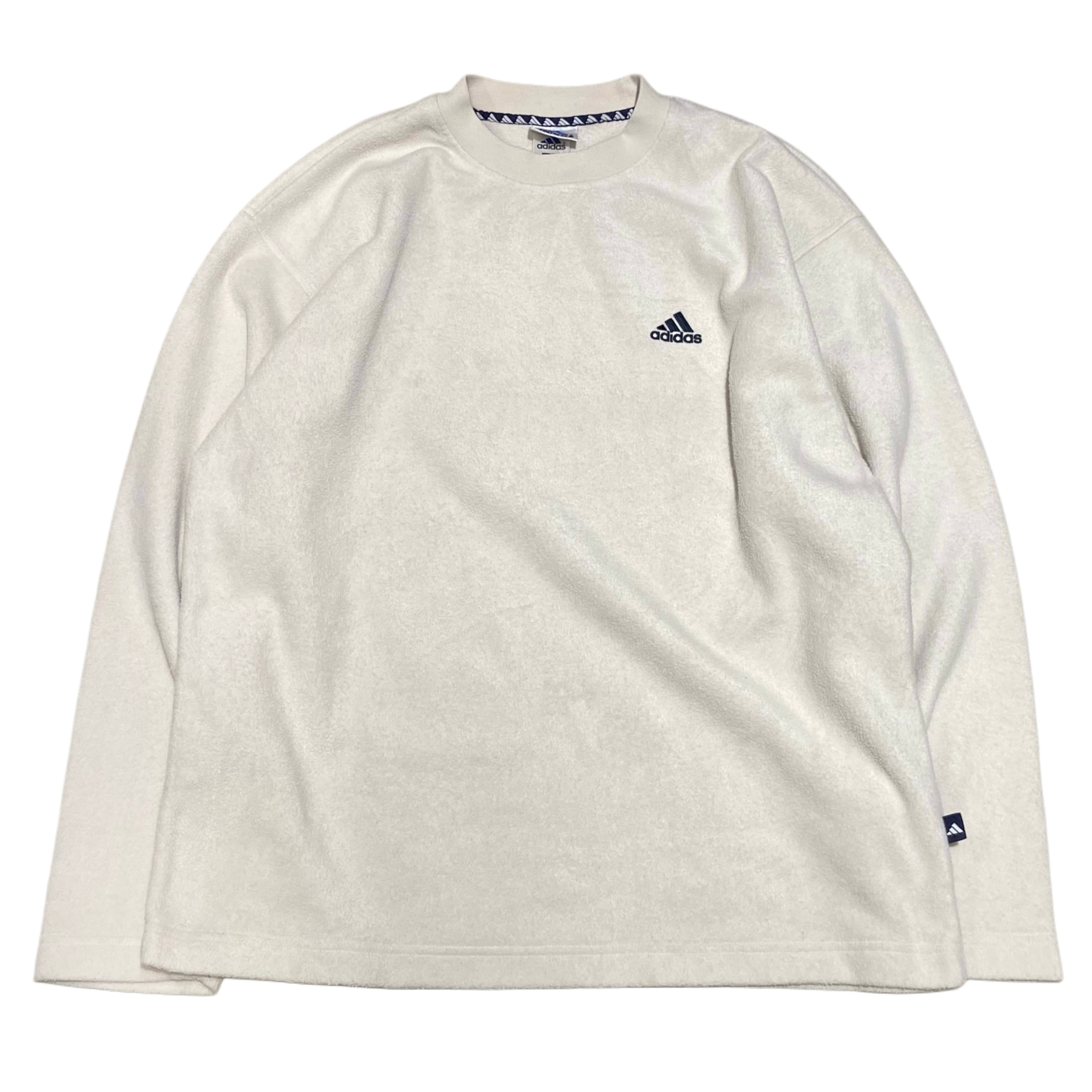 90s adidas アディダス パフォーマンスロゴ 刺繍 フリース カットソー 【L】オフホワイト