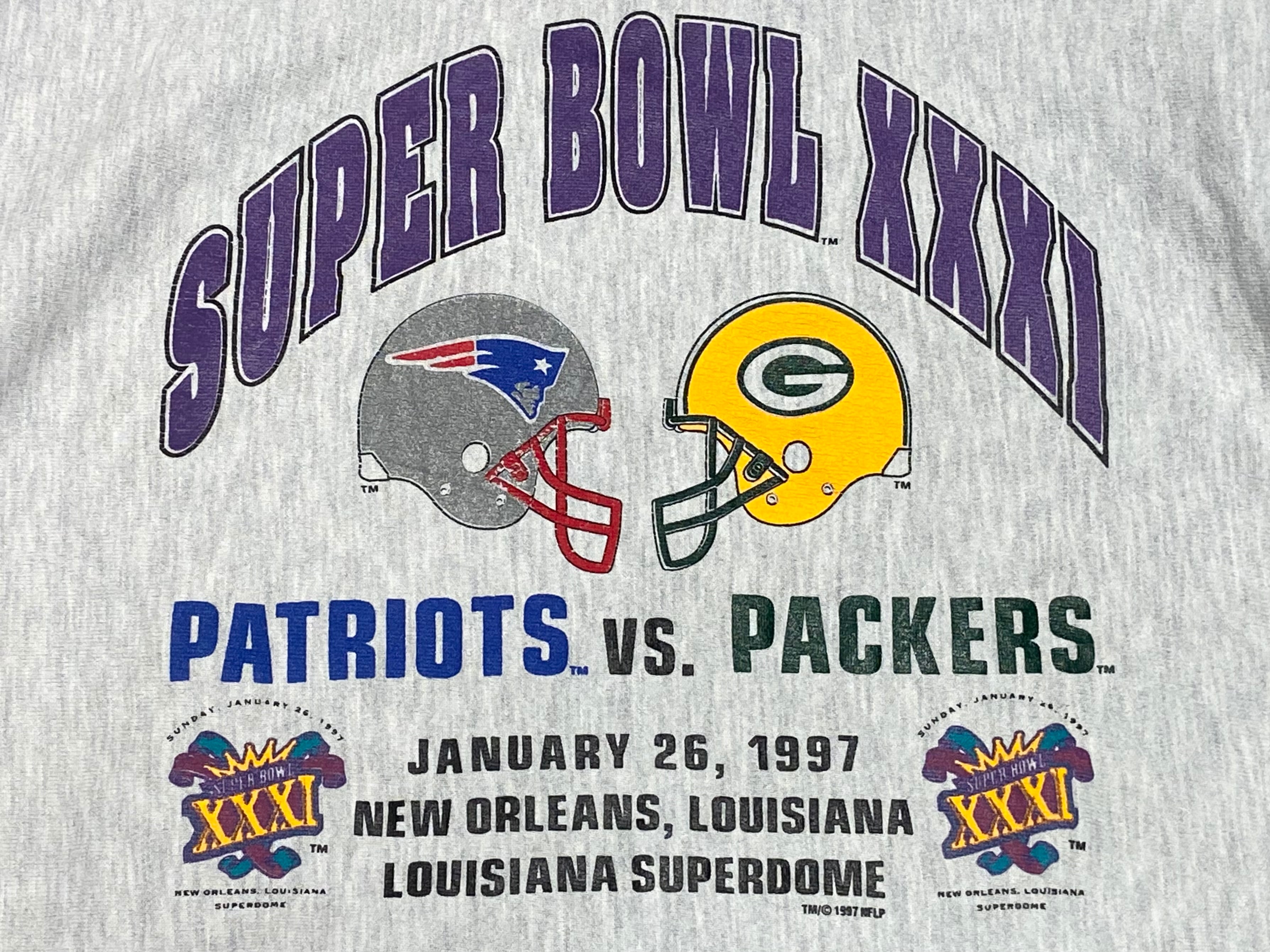 90s 1997 チャンピオン Champion リバースウィーブ スウェット 6段プリント NFL SUPER BOWL ペイトリオッツVSパッカーズ【L】 RW-758