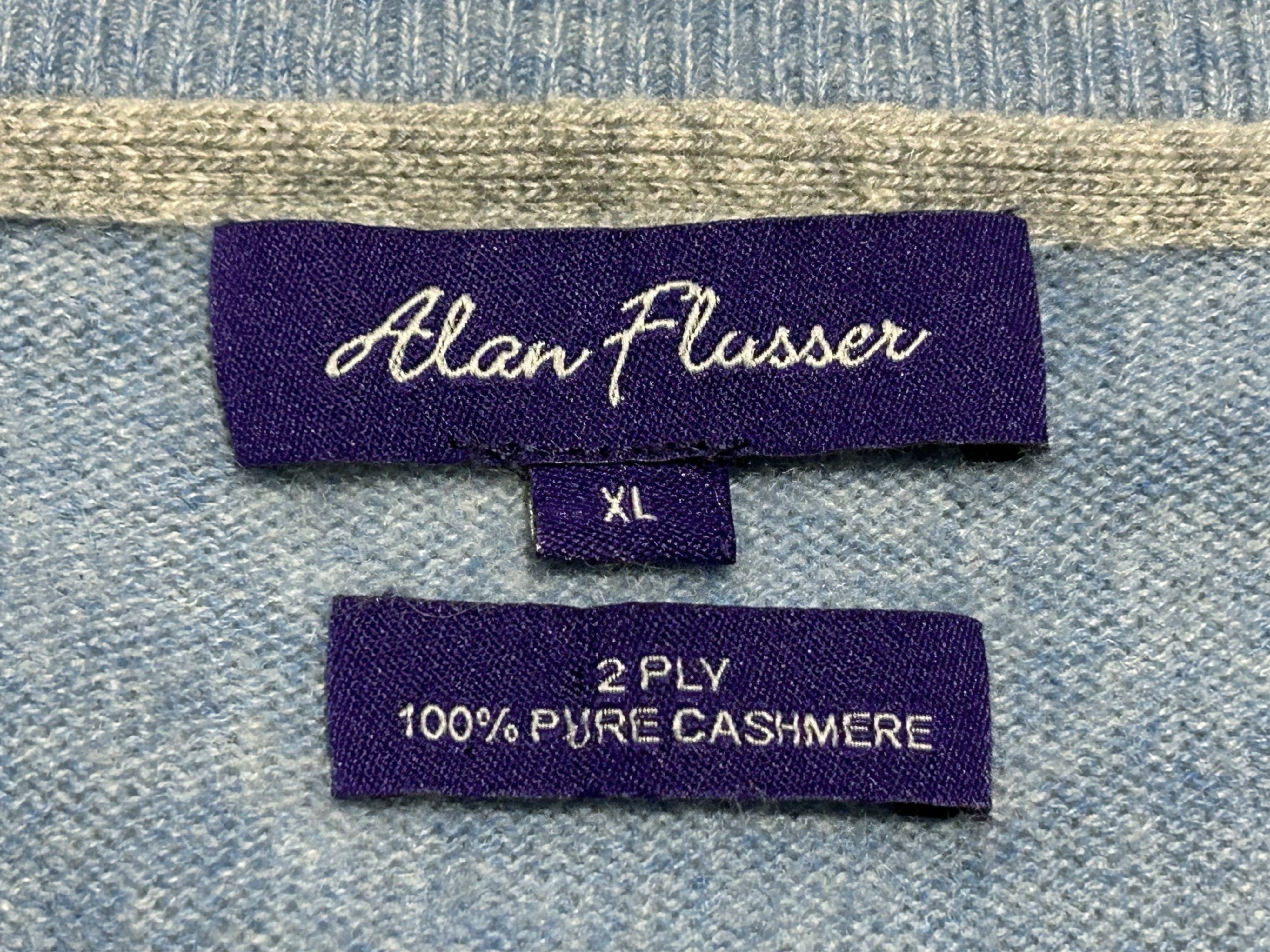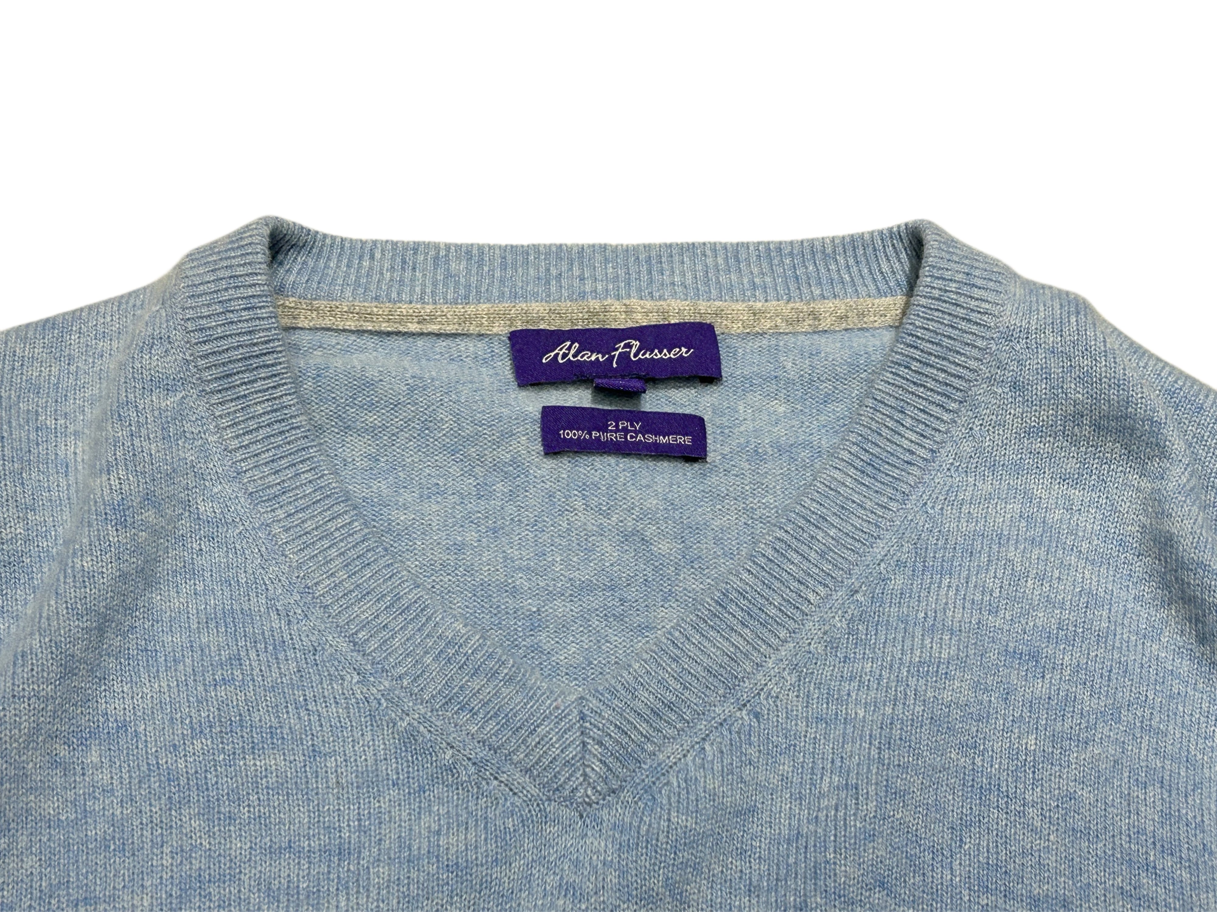 モテモテ注意報発令 2000s Alan Flusser Vネック カシミア ニット ライトブルー【XL】