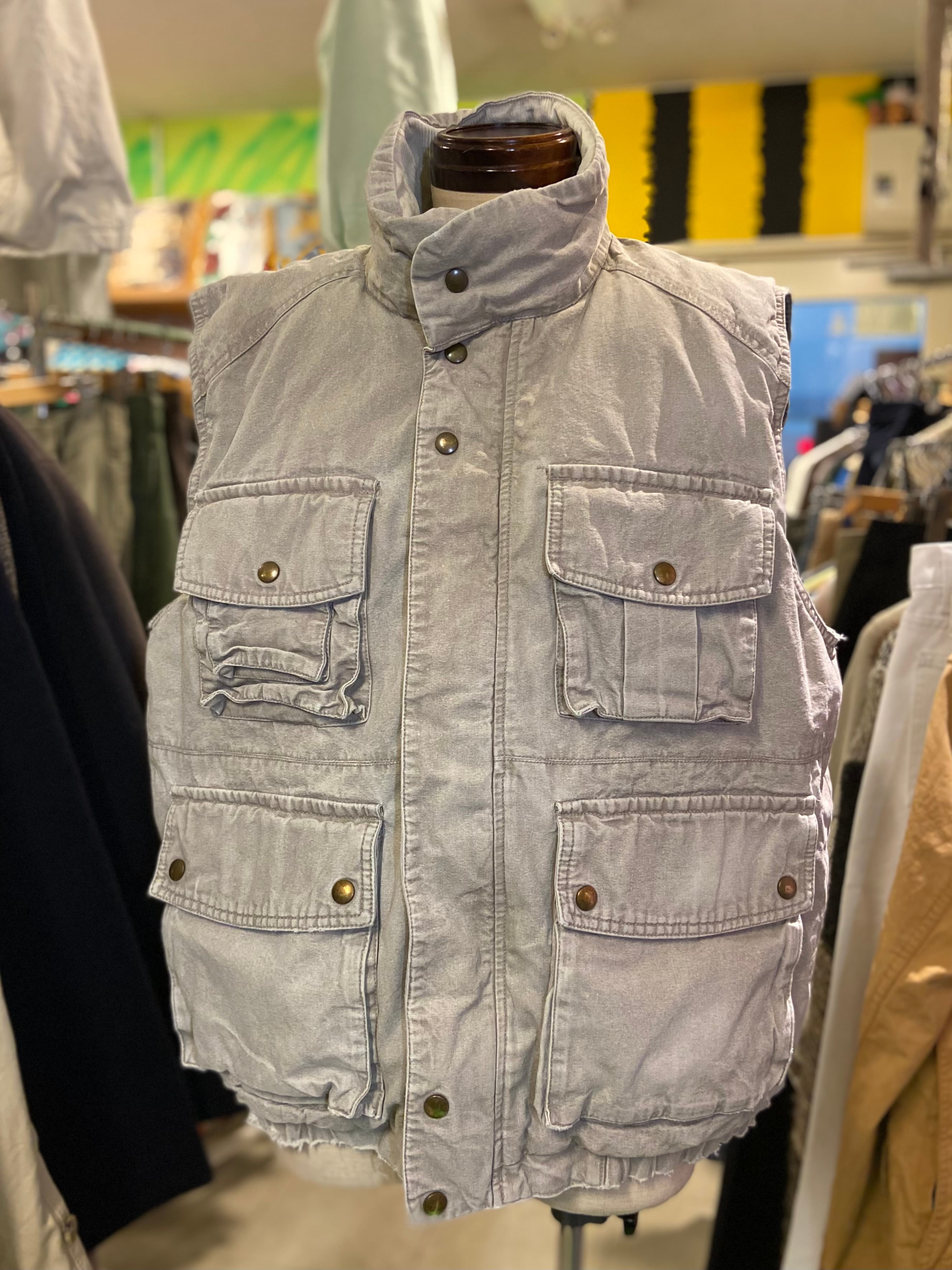 80s EDDIE BAUER エディーバウアー 黒タグ 多ポケット キャンバス ダウンベスト【L】