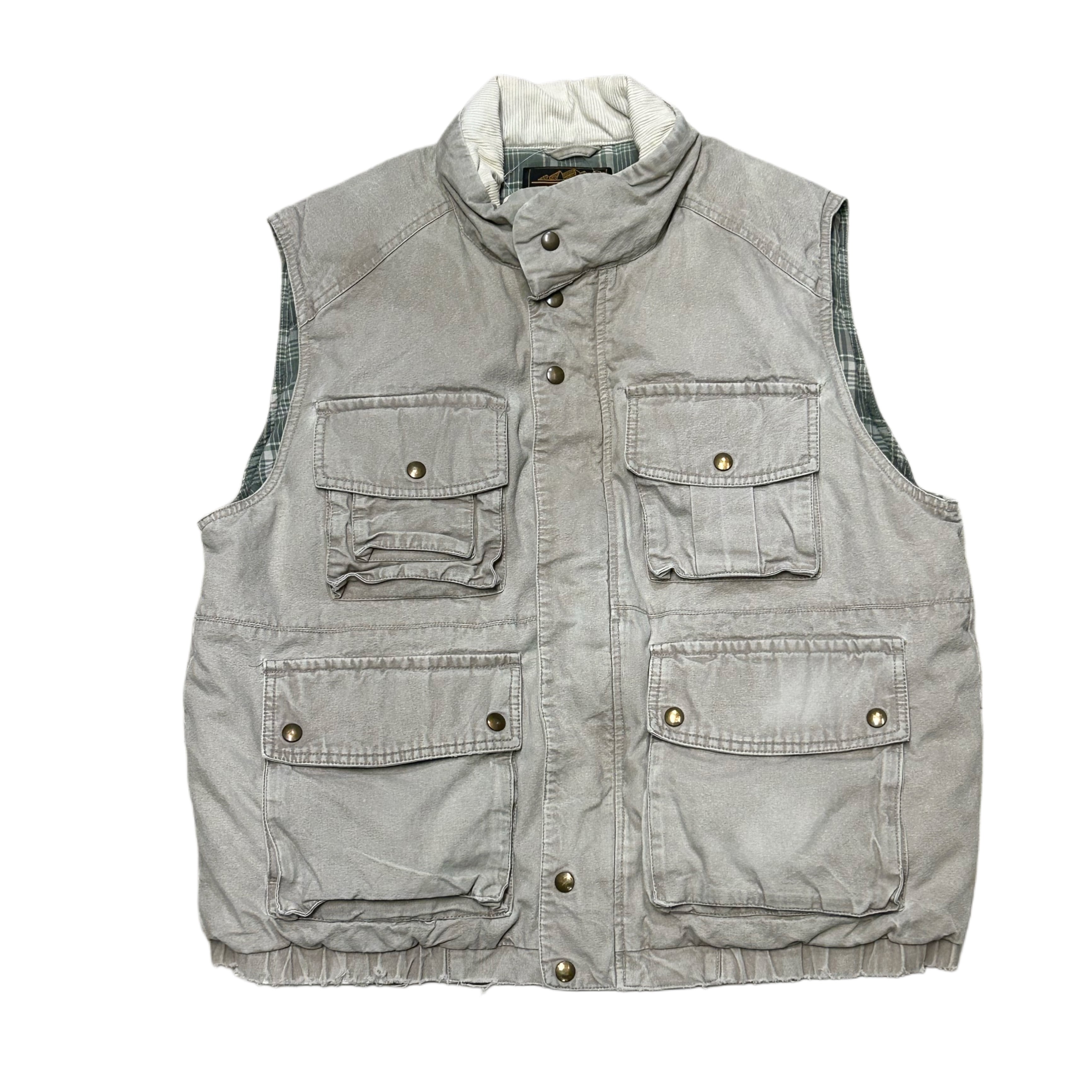 80s EDDIE BAUER エディーバウアー 黒タグ 多ポケット キャンバス ダウンベスト【L】 MADE IN KOREA