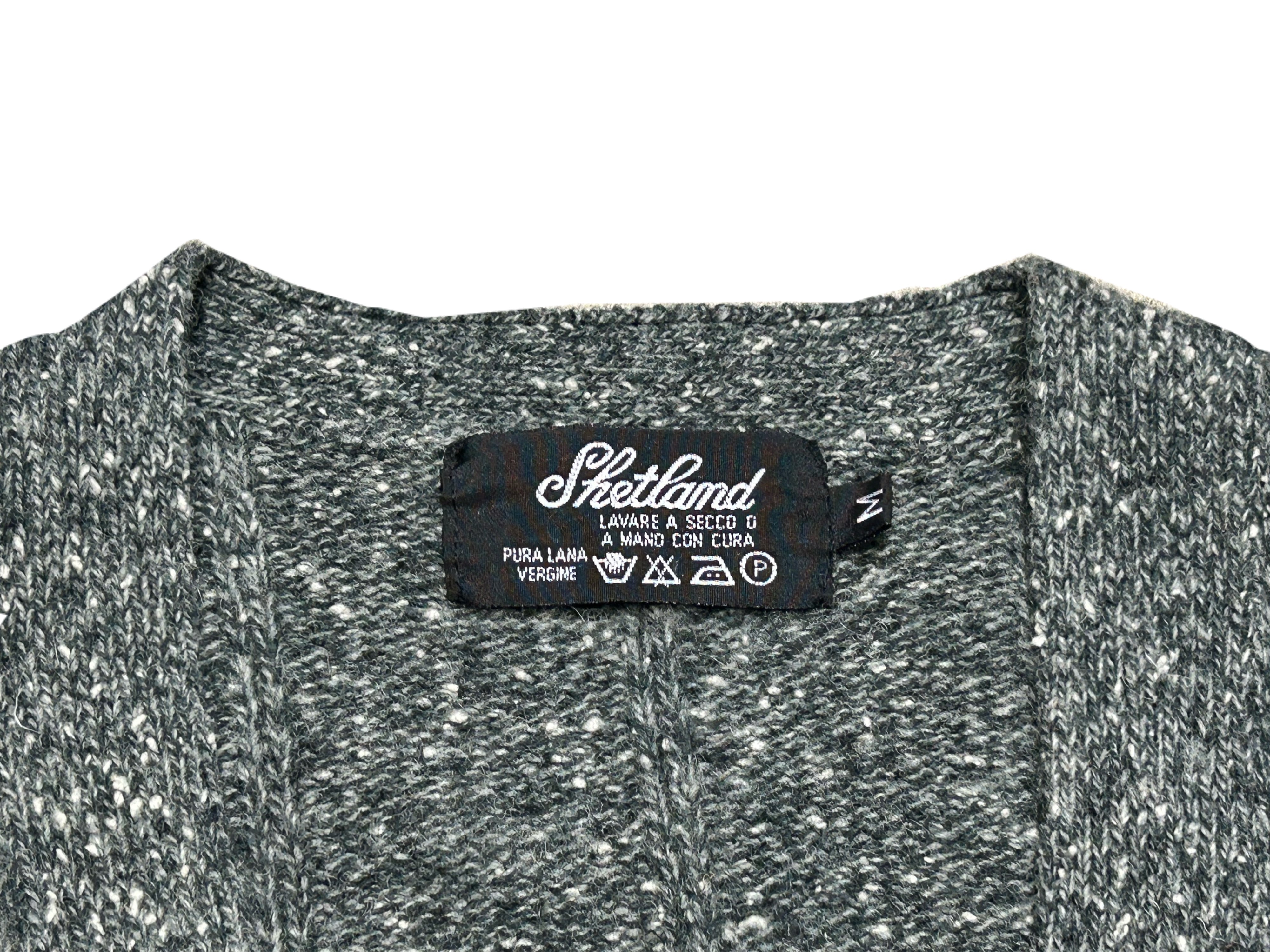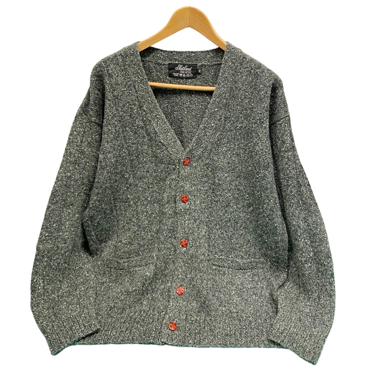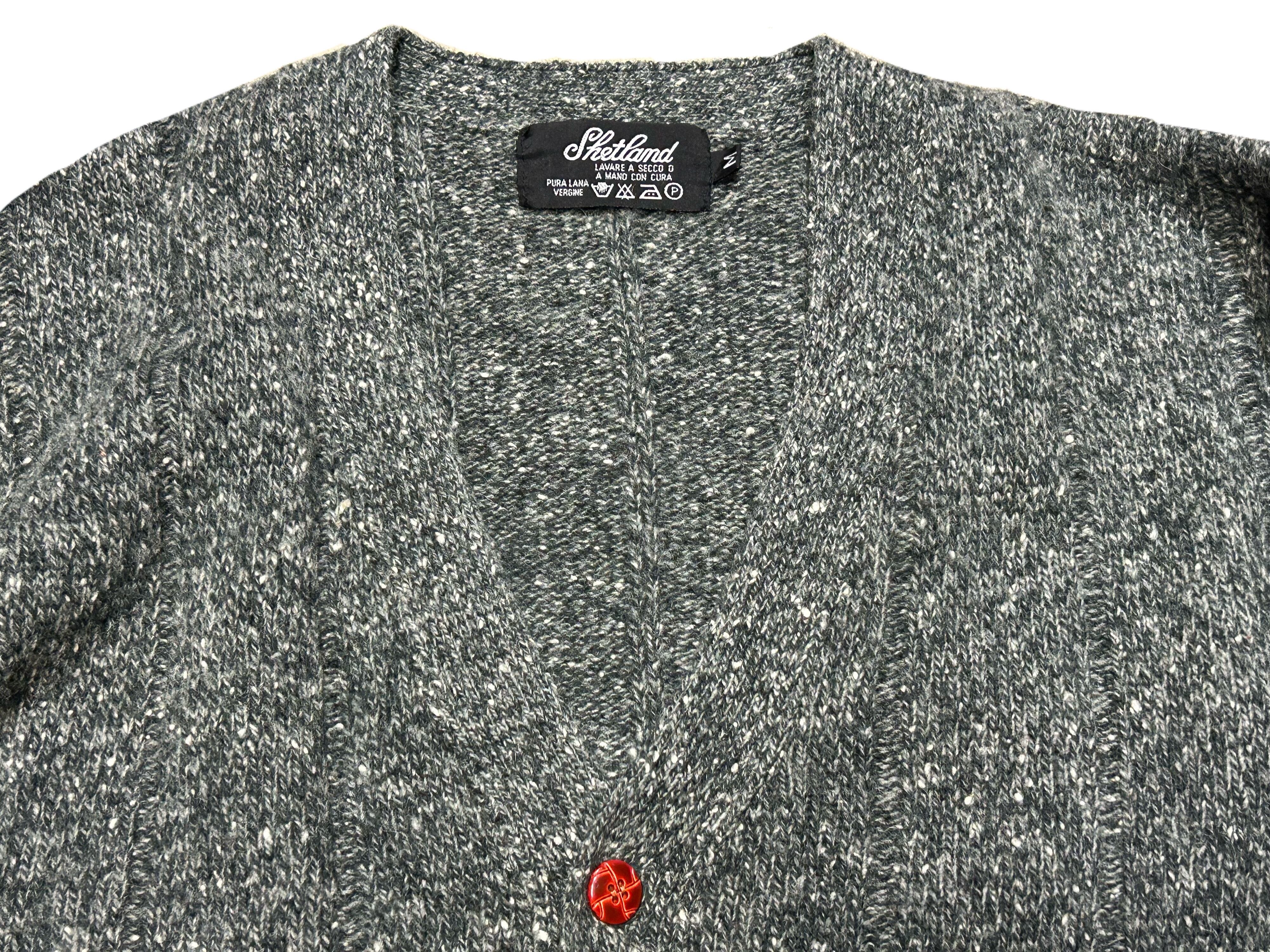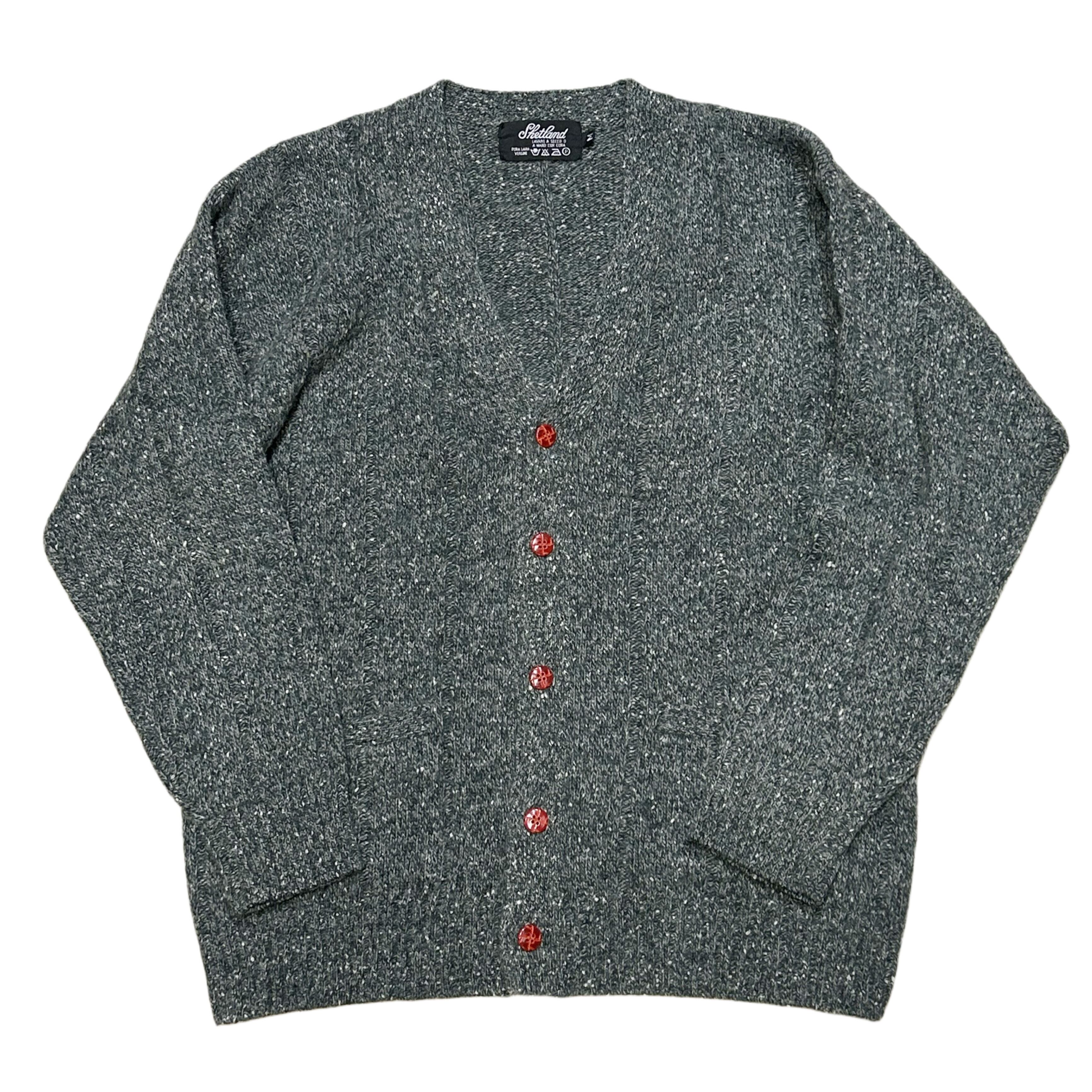 80s シェットランド ミックスネップ ワイドリブニット カーディガン【M】