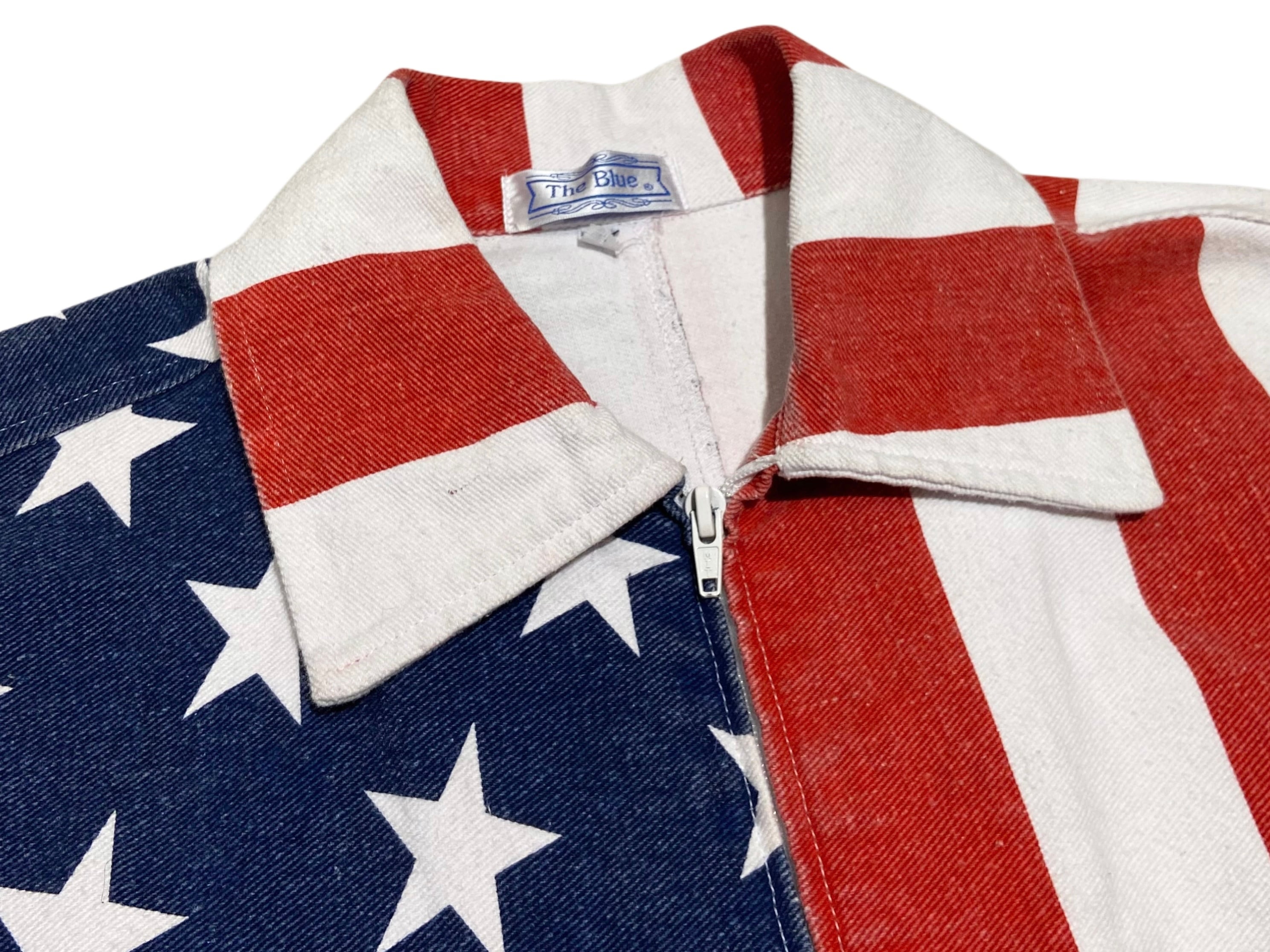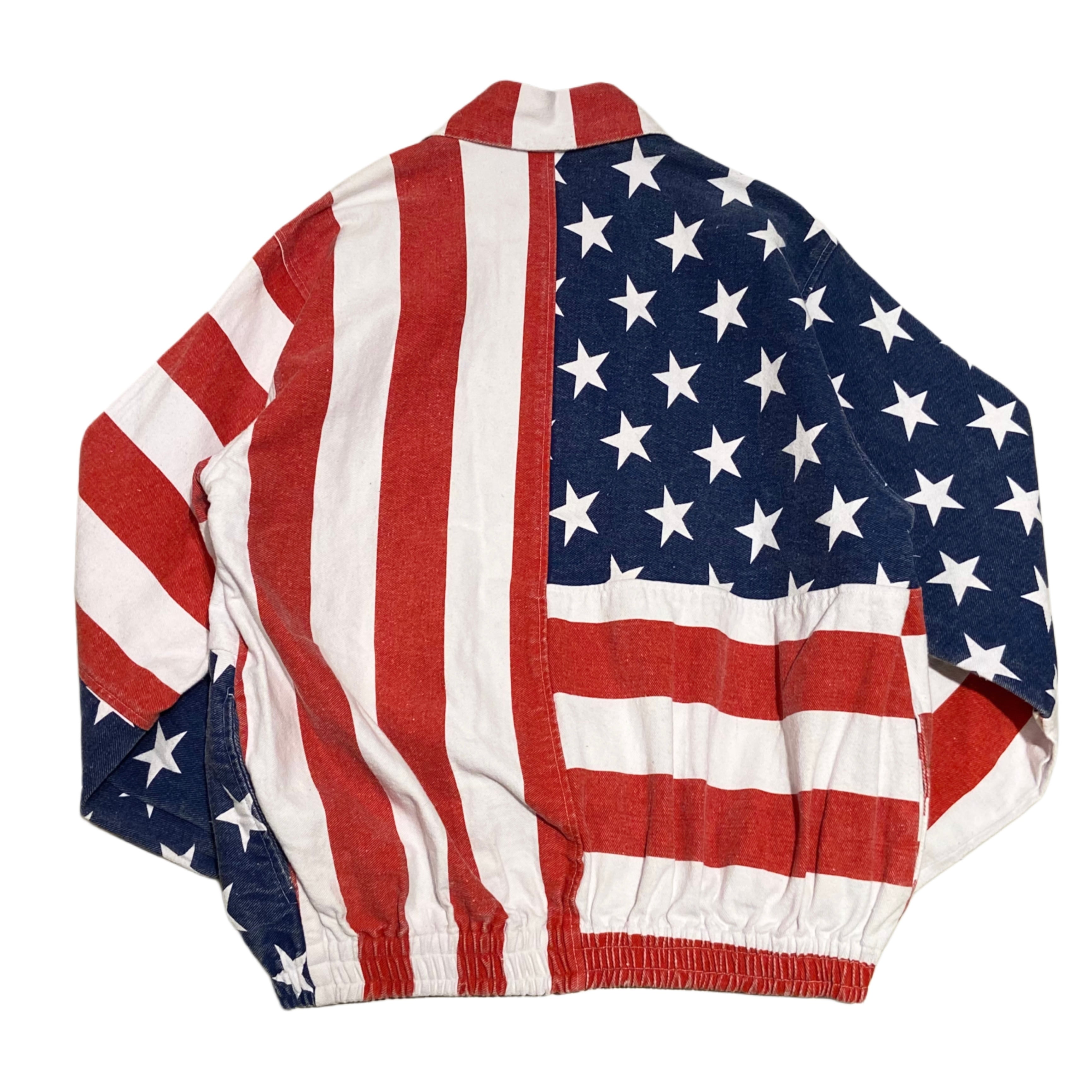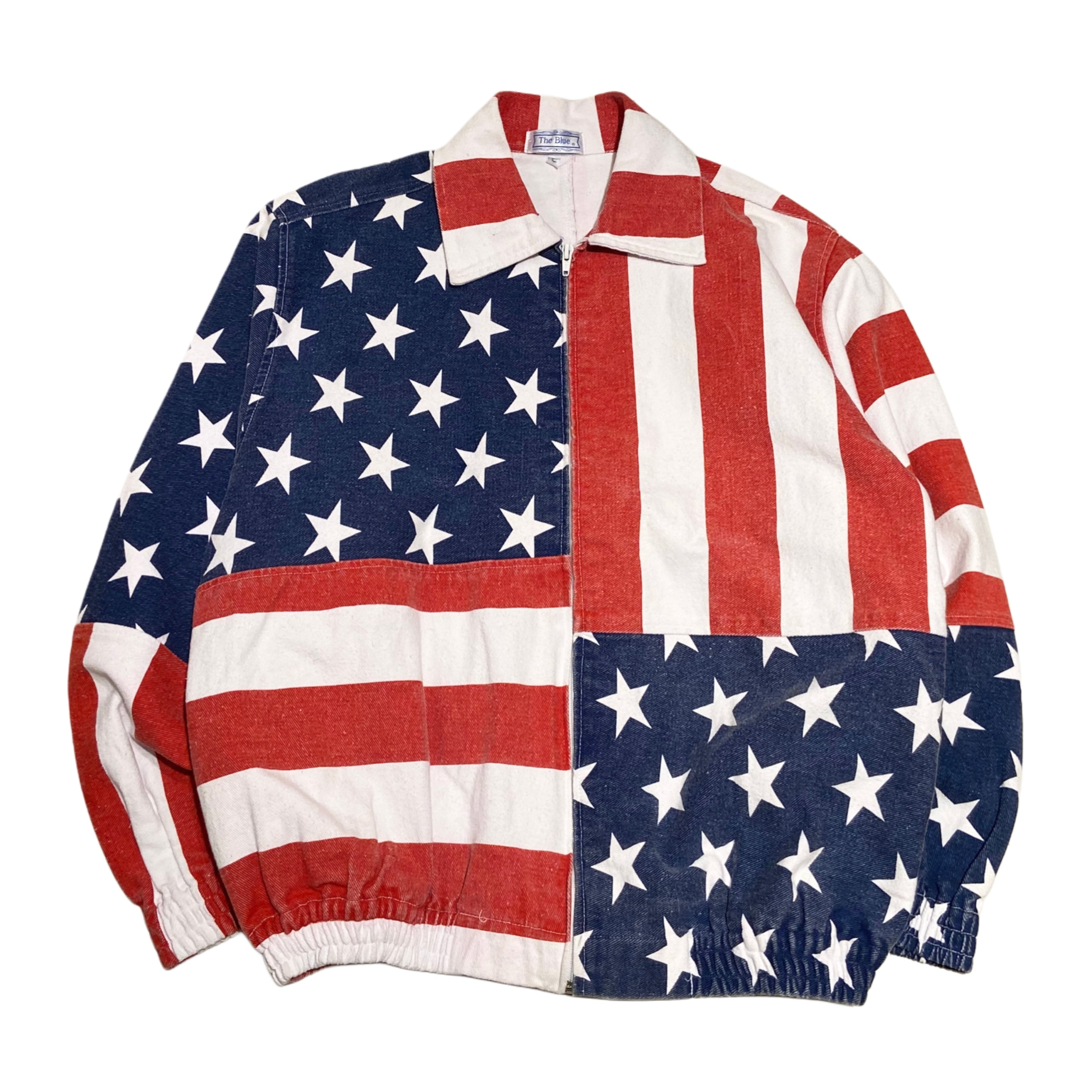 アメリッキャーン Y2K The Blue 総柄 アメリカ 最条旗 国旗 USA ジャケット【XL】レッド×ホワイト×ネイビー
