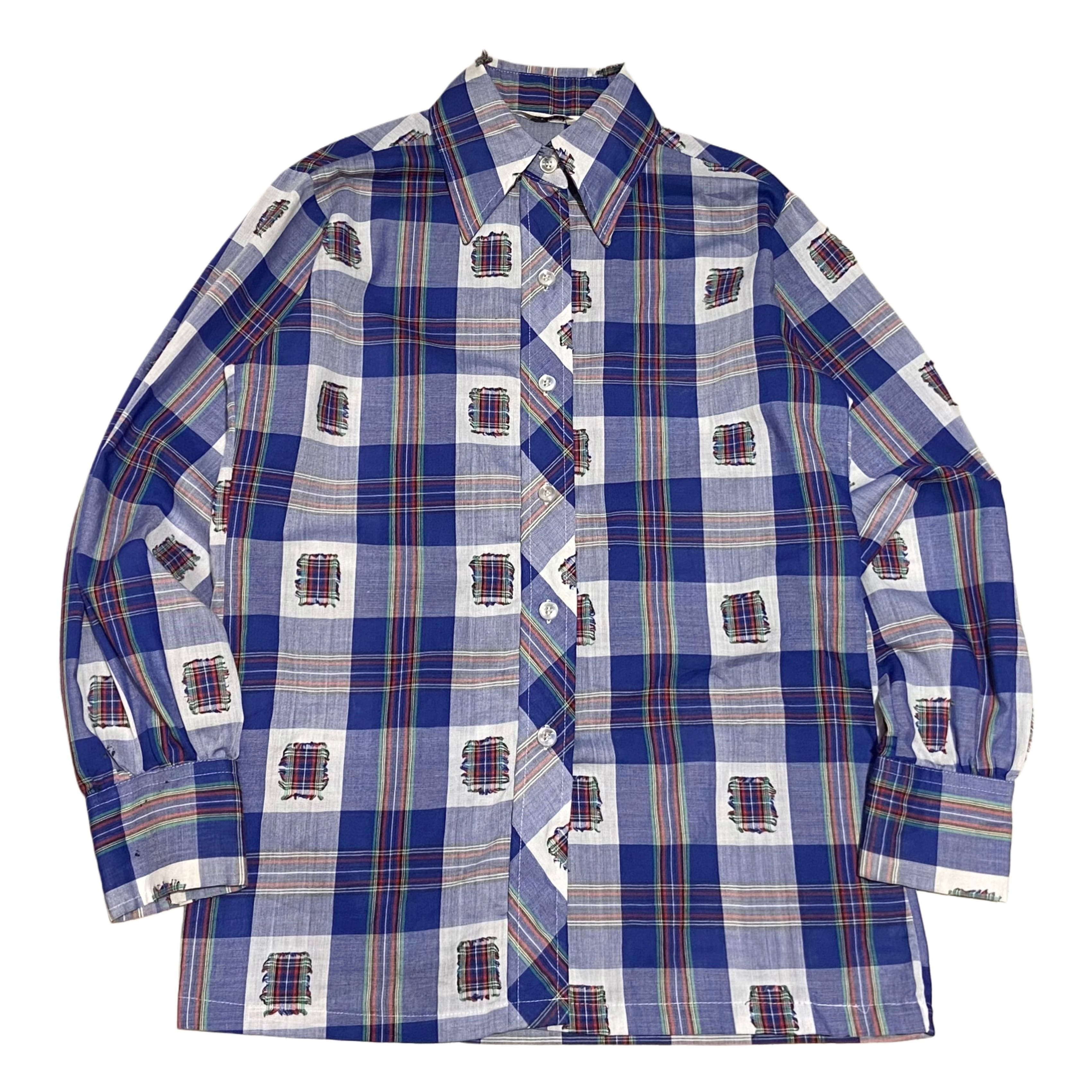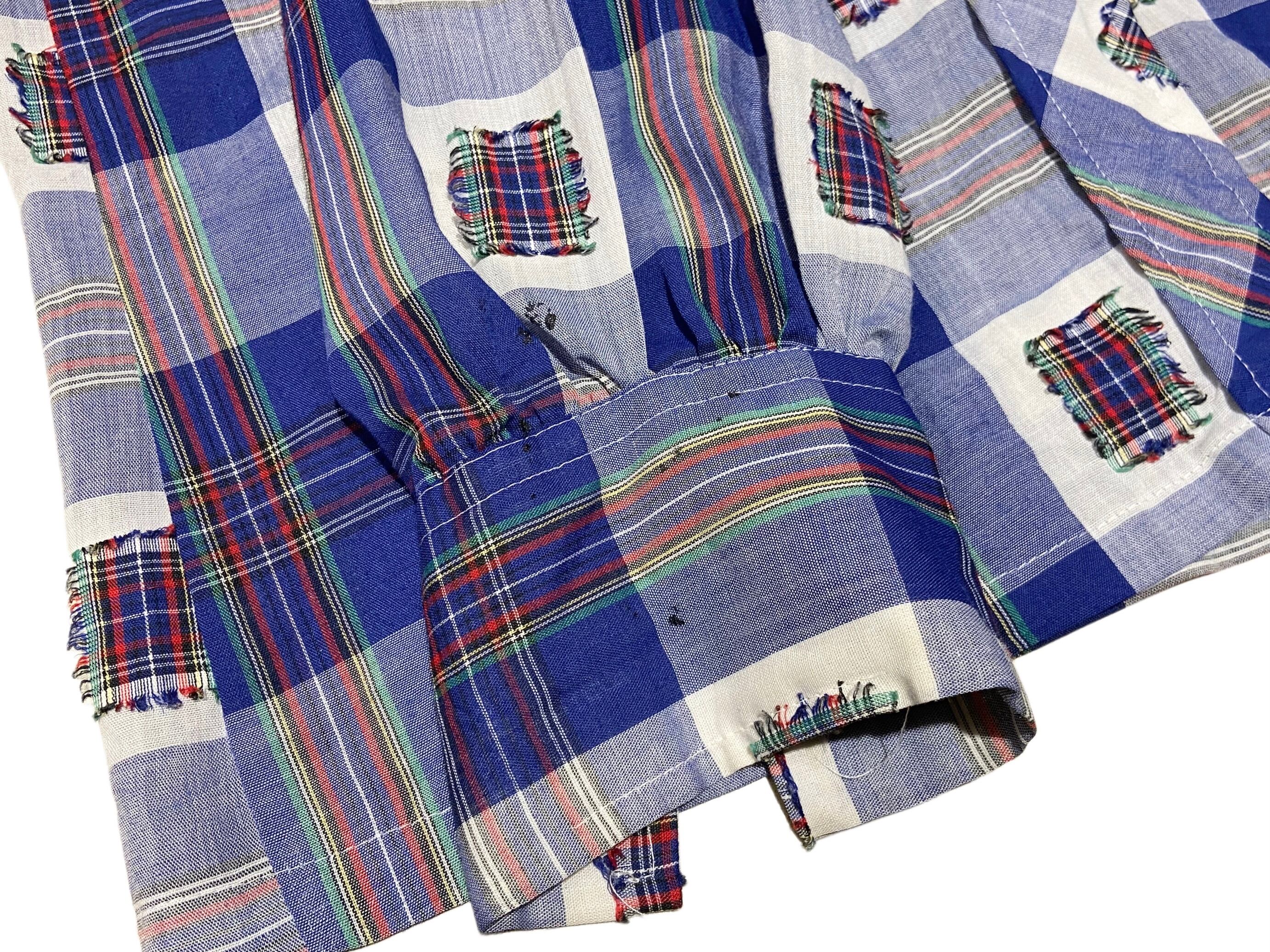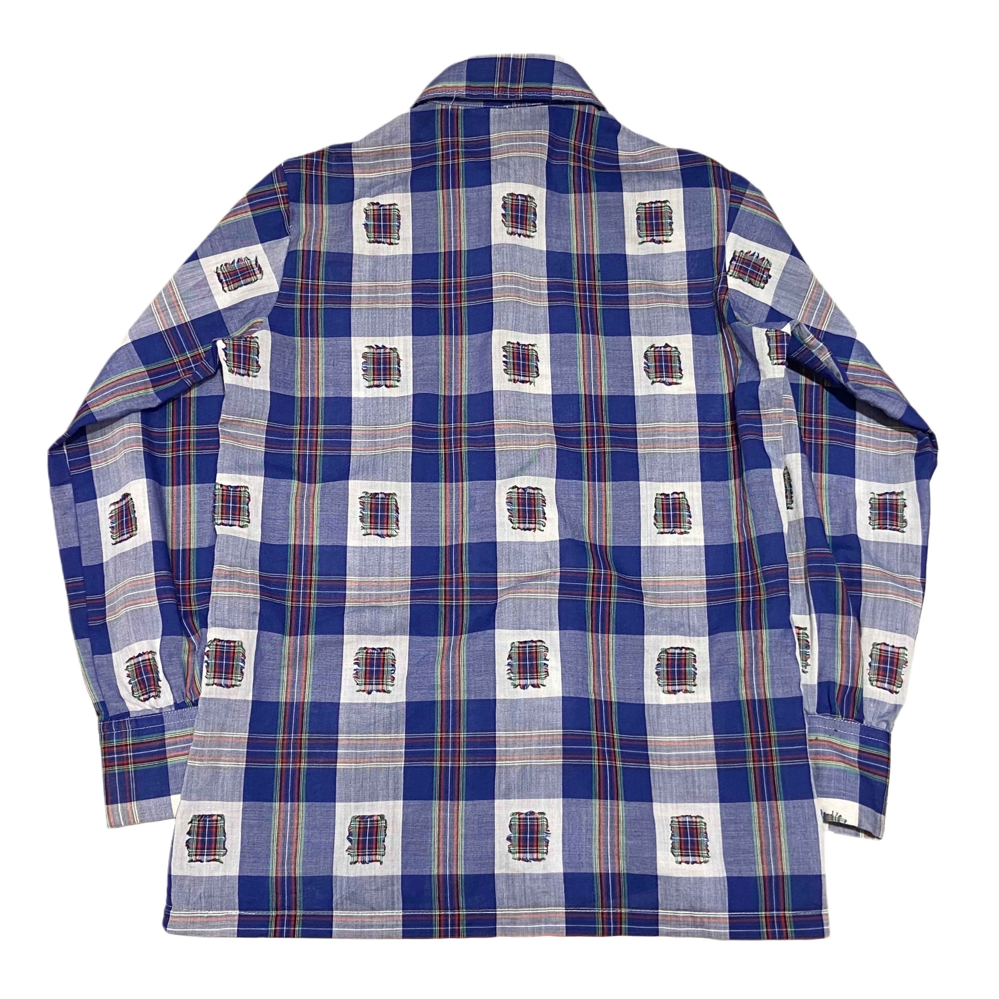 70s Terry チェック パッチ ボックスシャツ【M】ホワイト×ブルー×イエロー×レッド×グリーン×ブラック