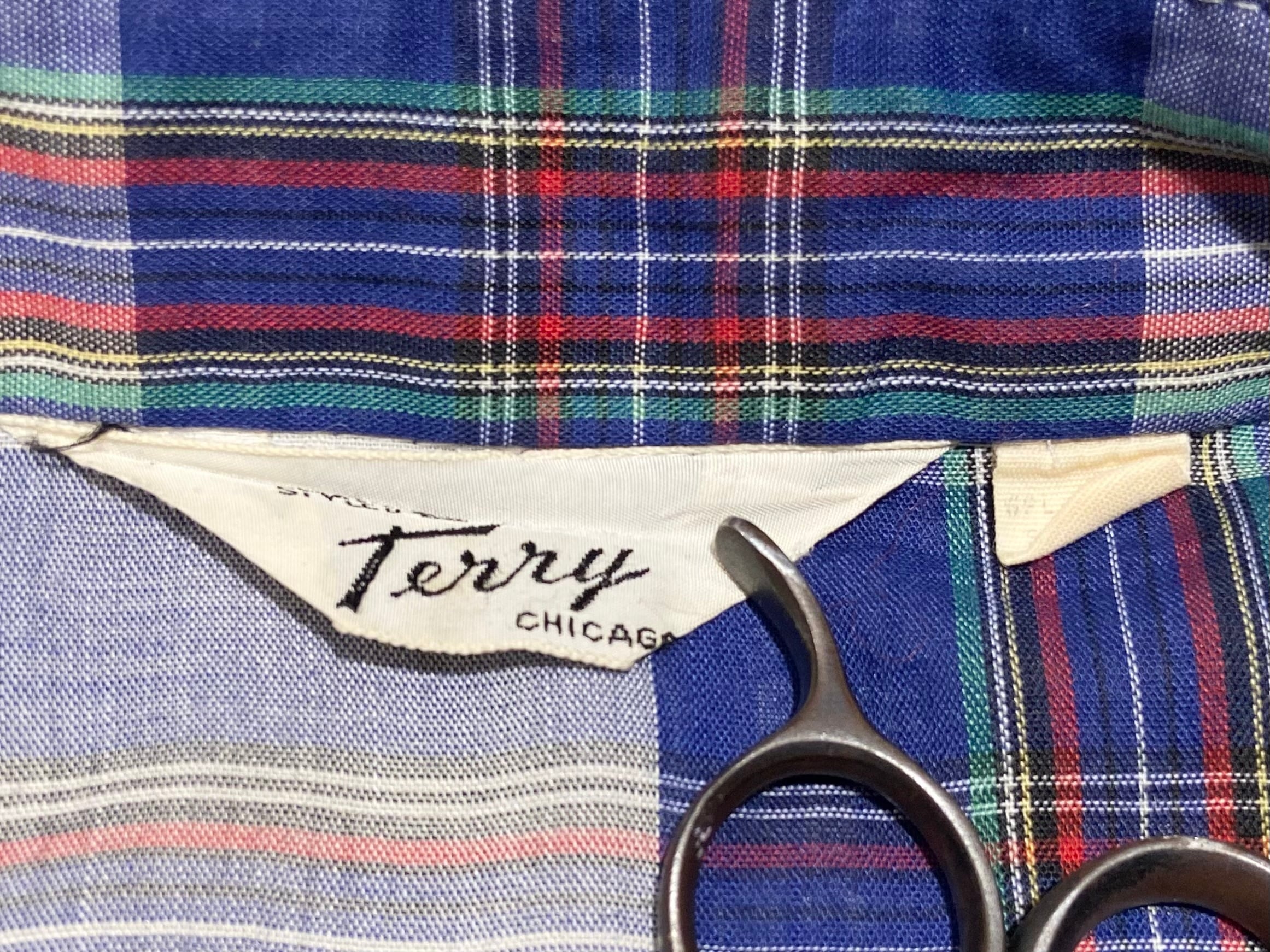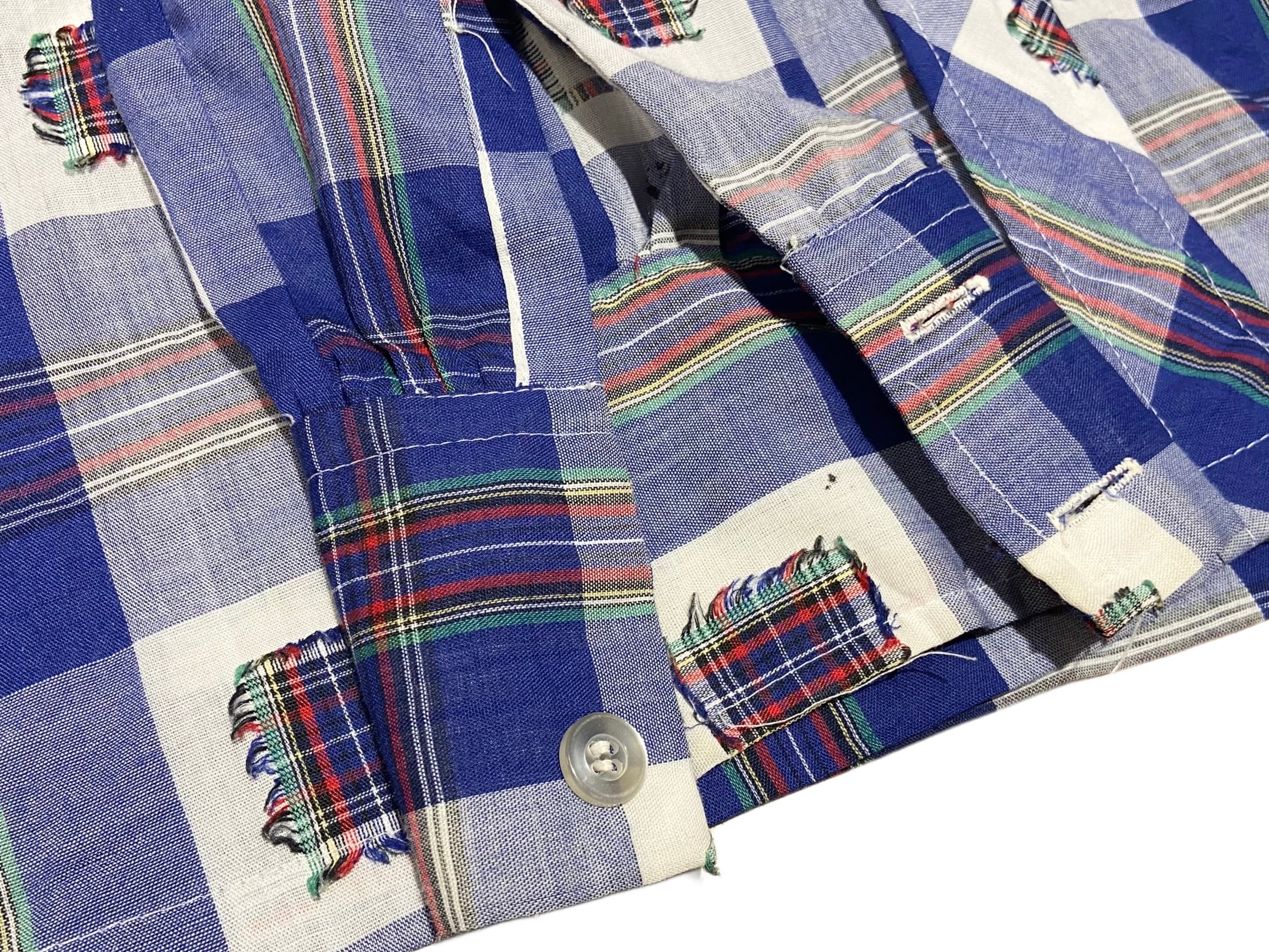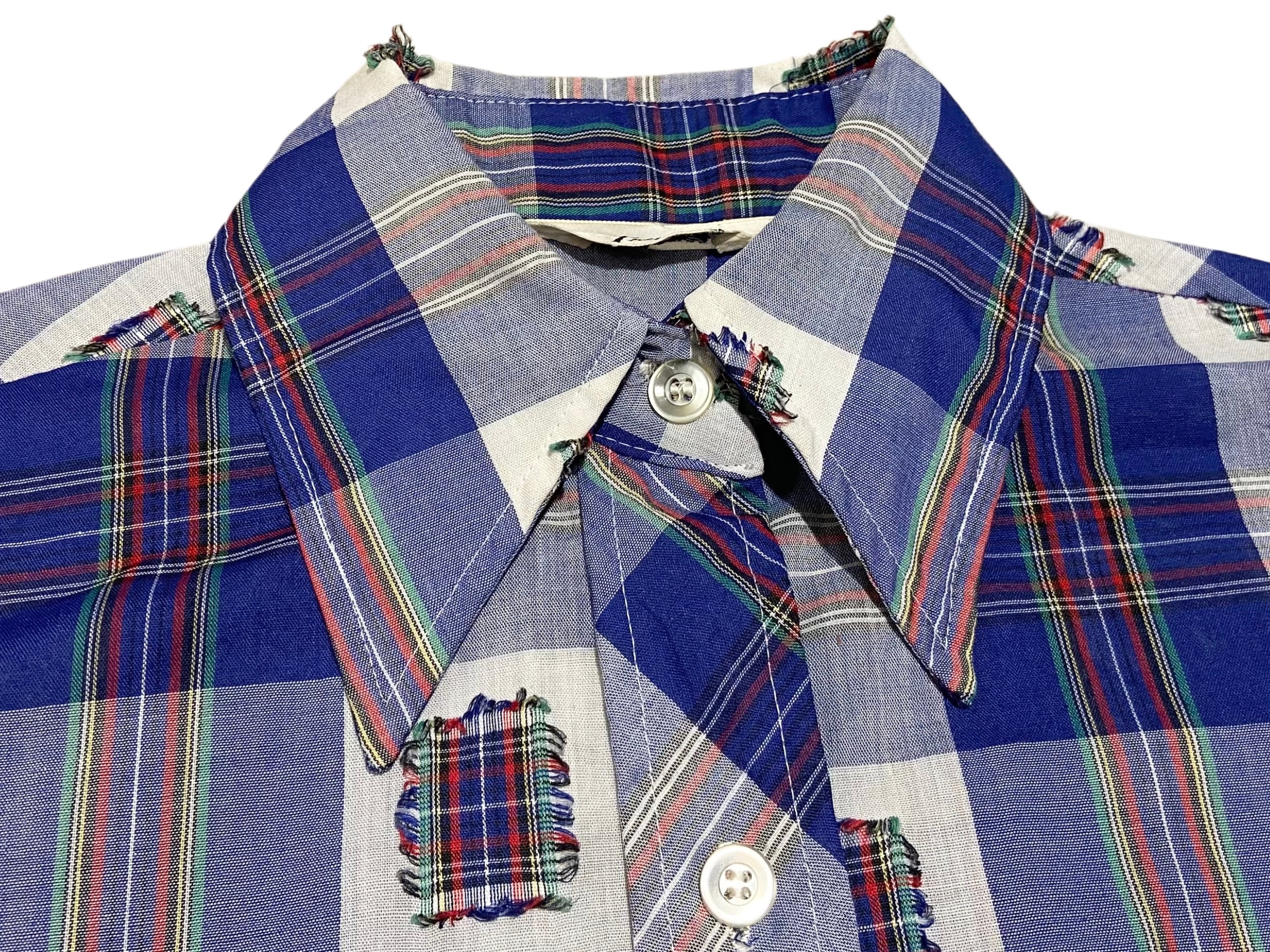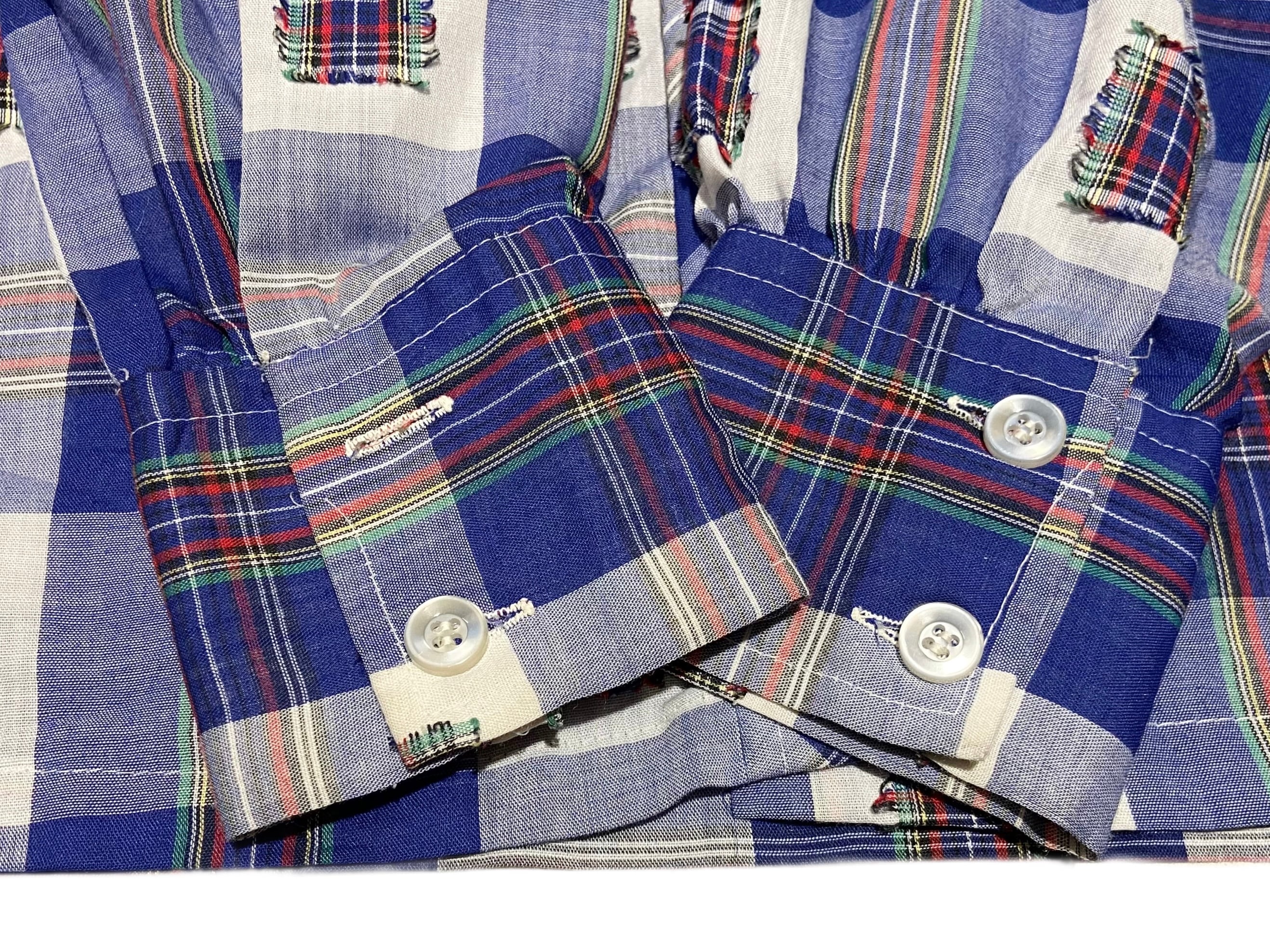 70s Terry チェック パッチ ボックスシャツ【M】ホワイト×ブルー×イエロー×レッド×グリーン×ブラック