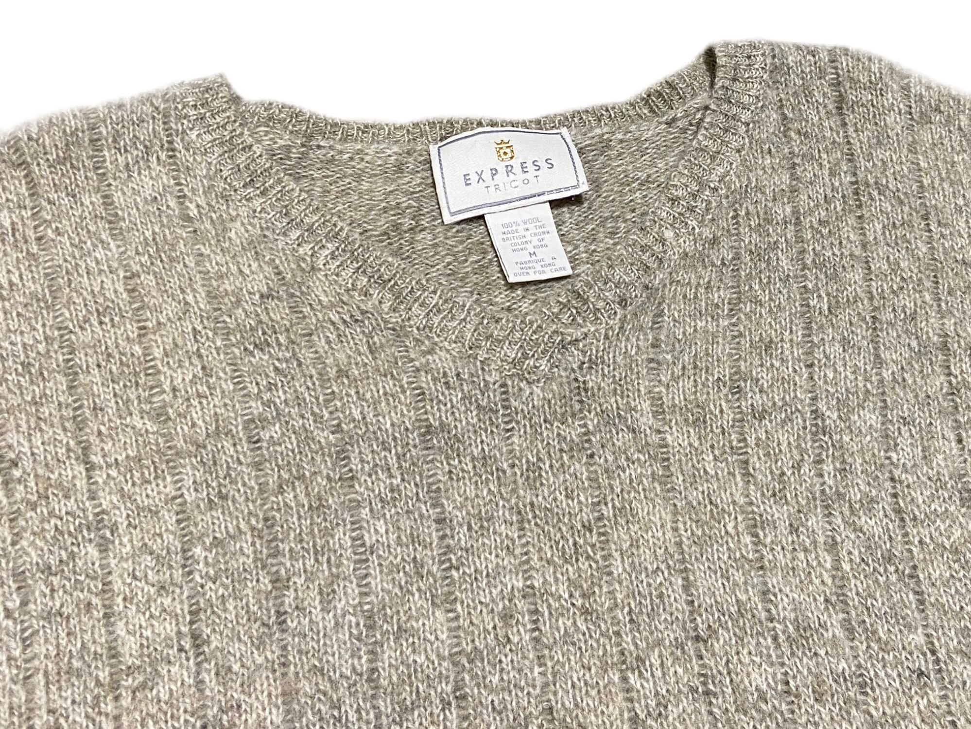 80s EXPRESS Vネック ウール ニット 【M】オートミール
