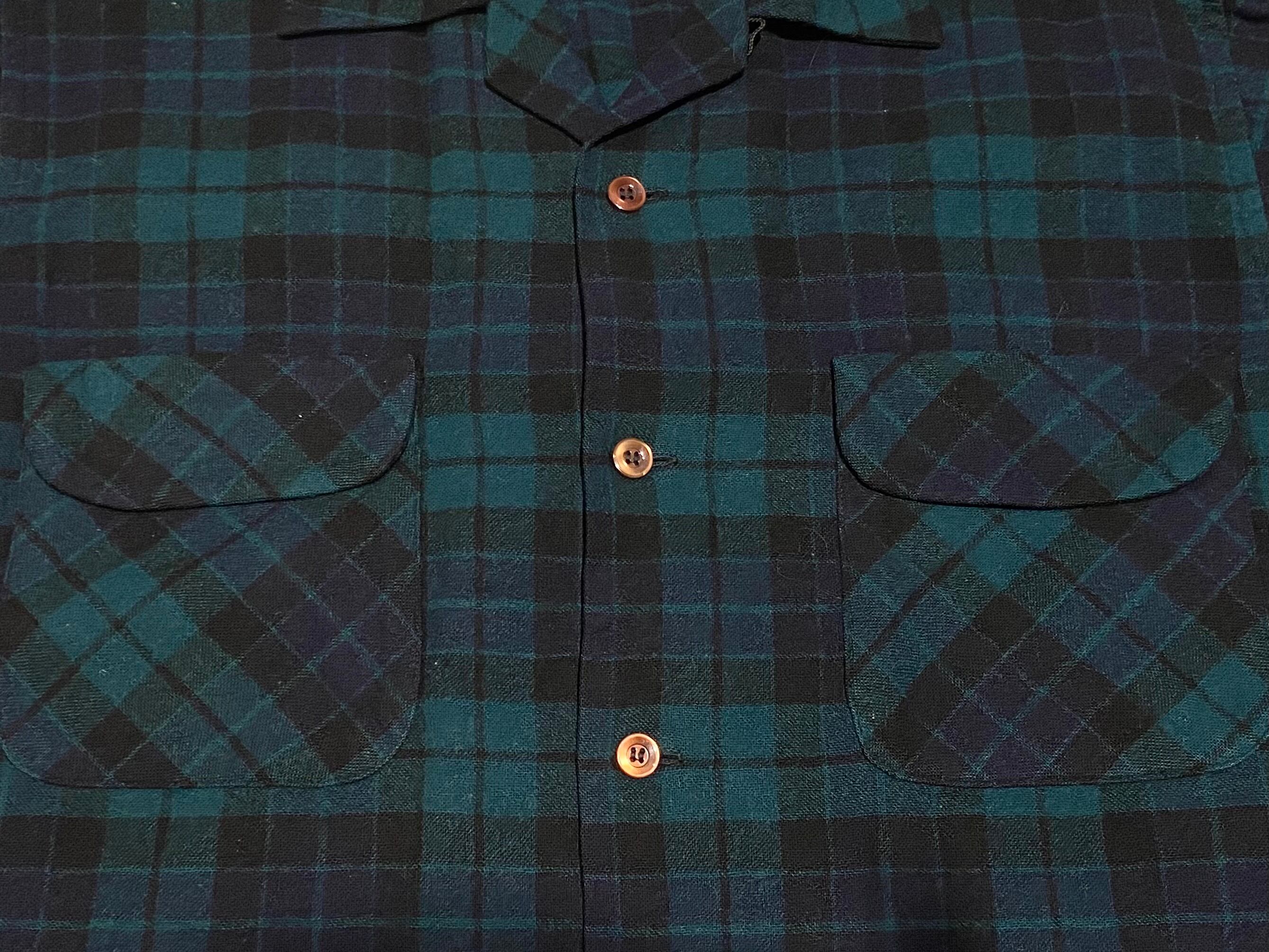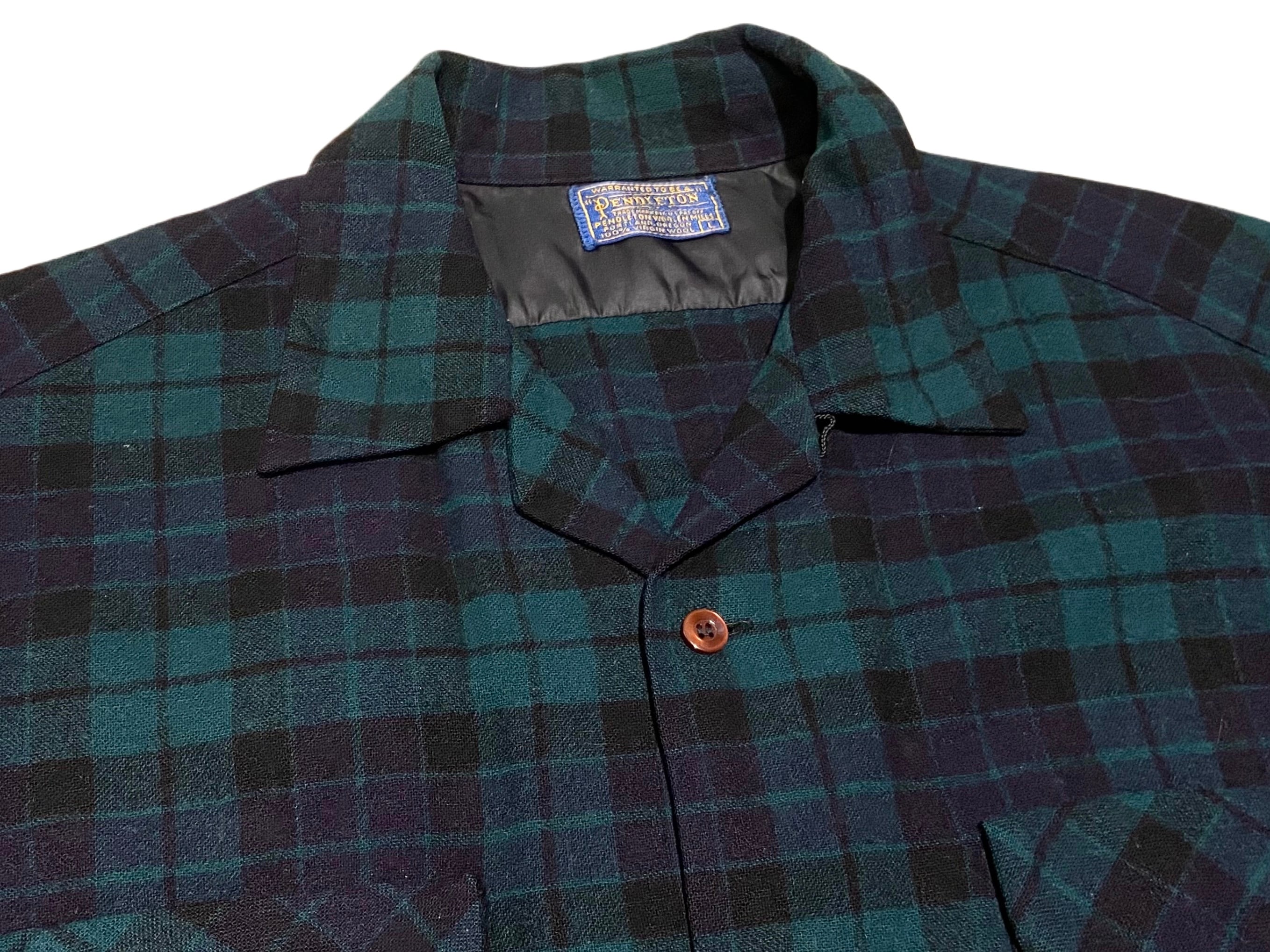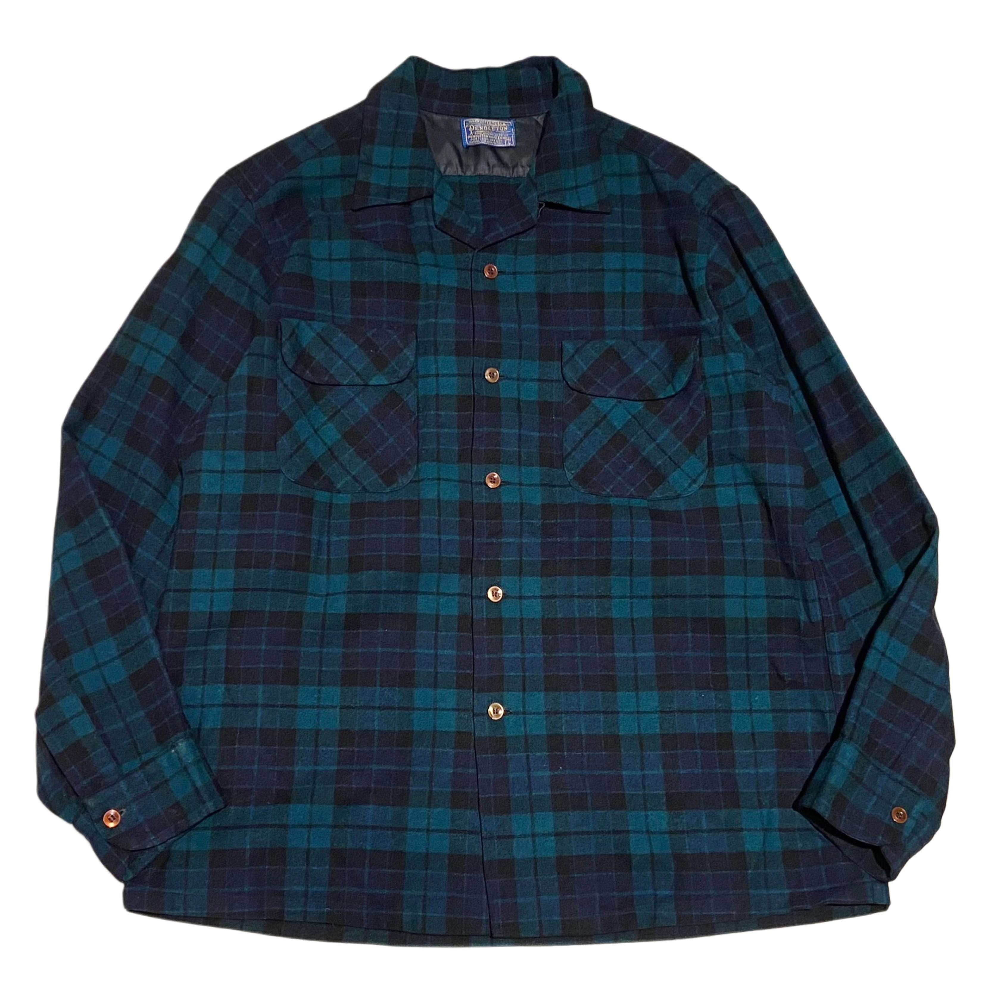 60s Pendleton ペンドルトン バージンウール オンブレチェック ボックスシャツ ブラックウォッチ【L】 MADE IN USA
