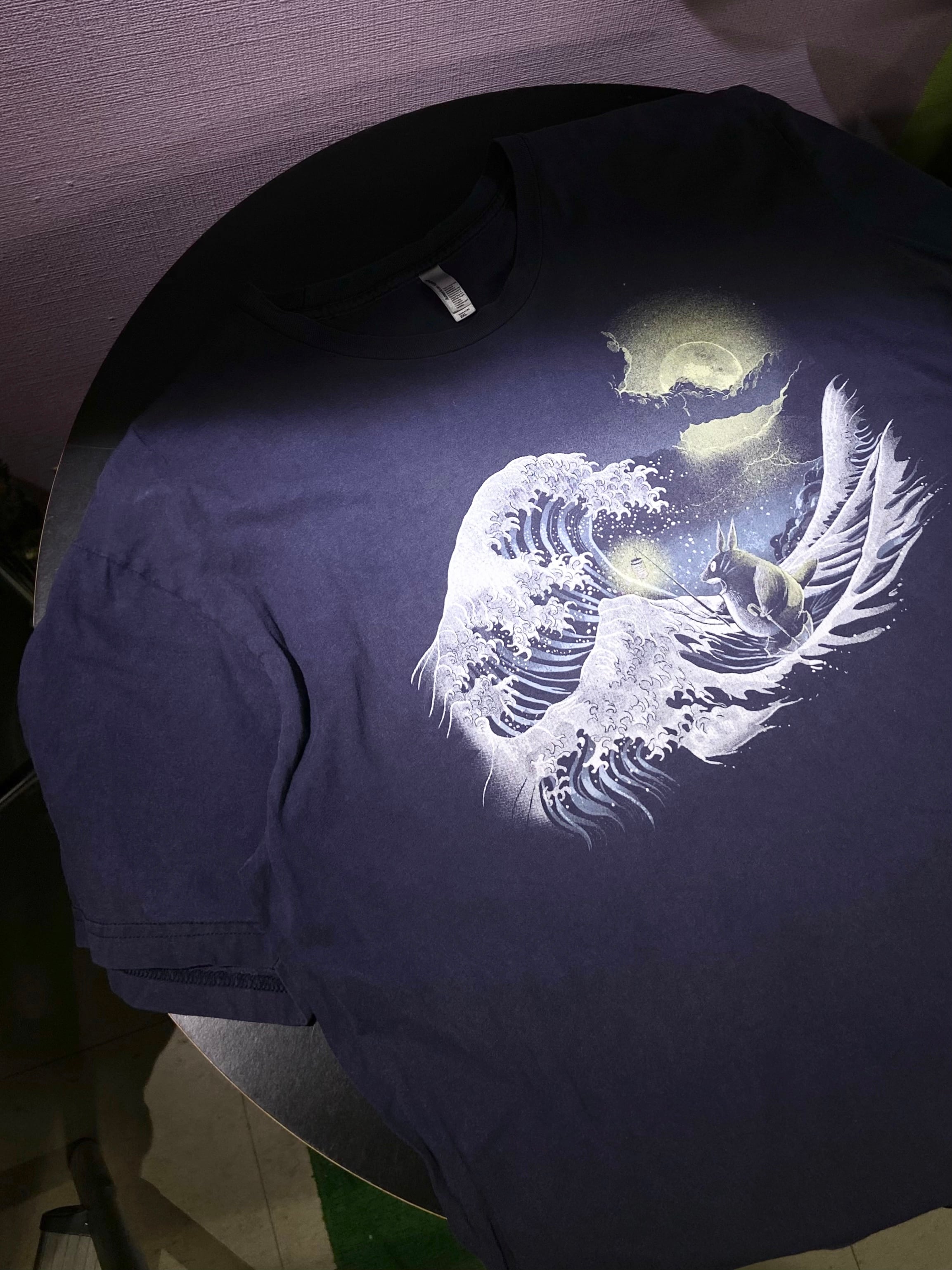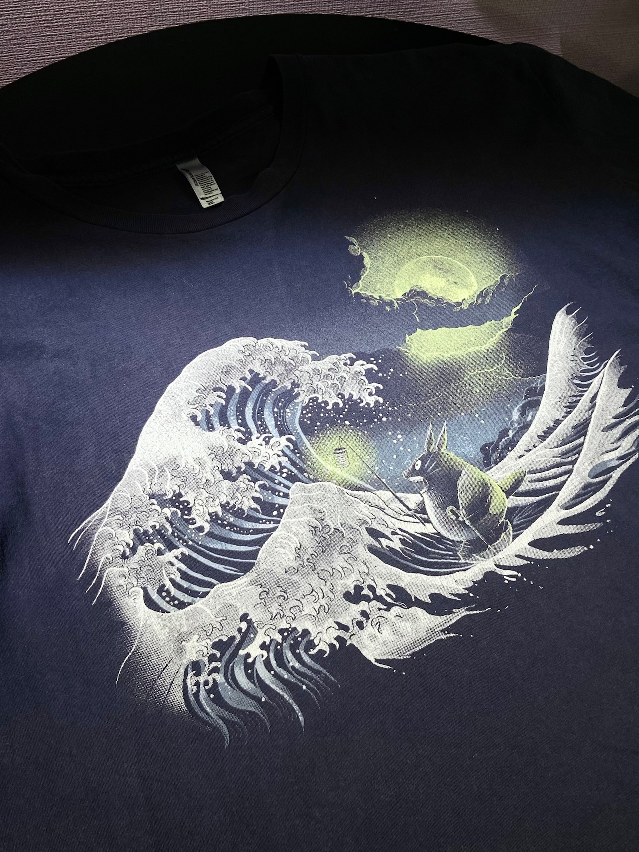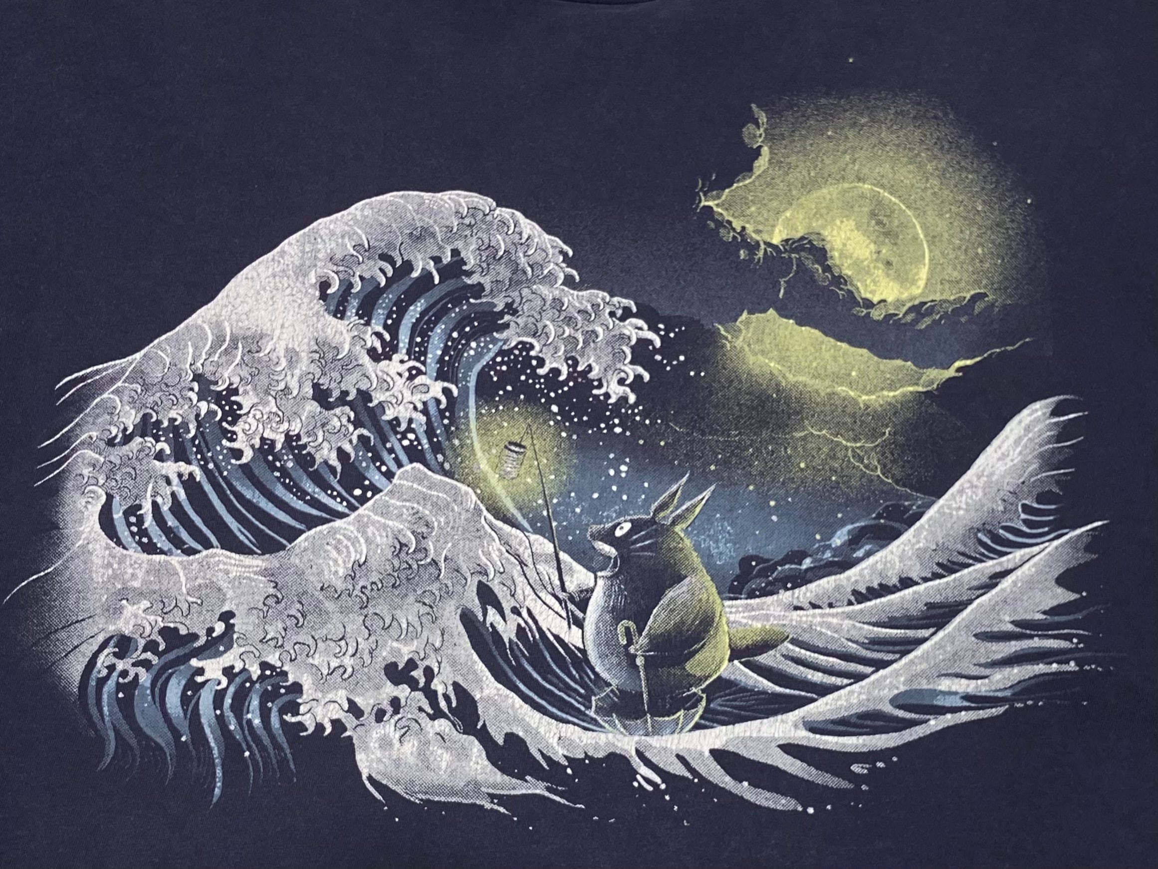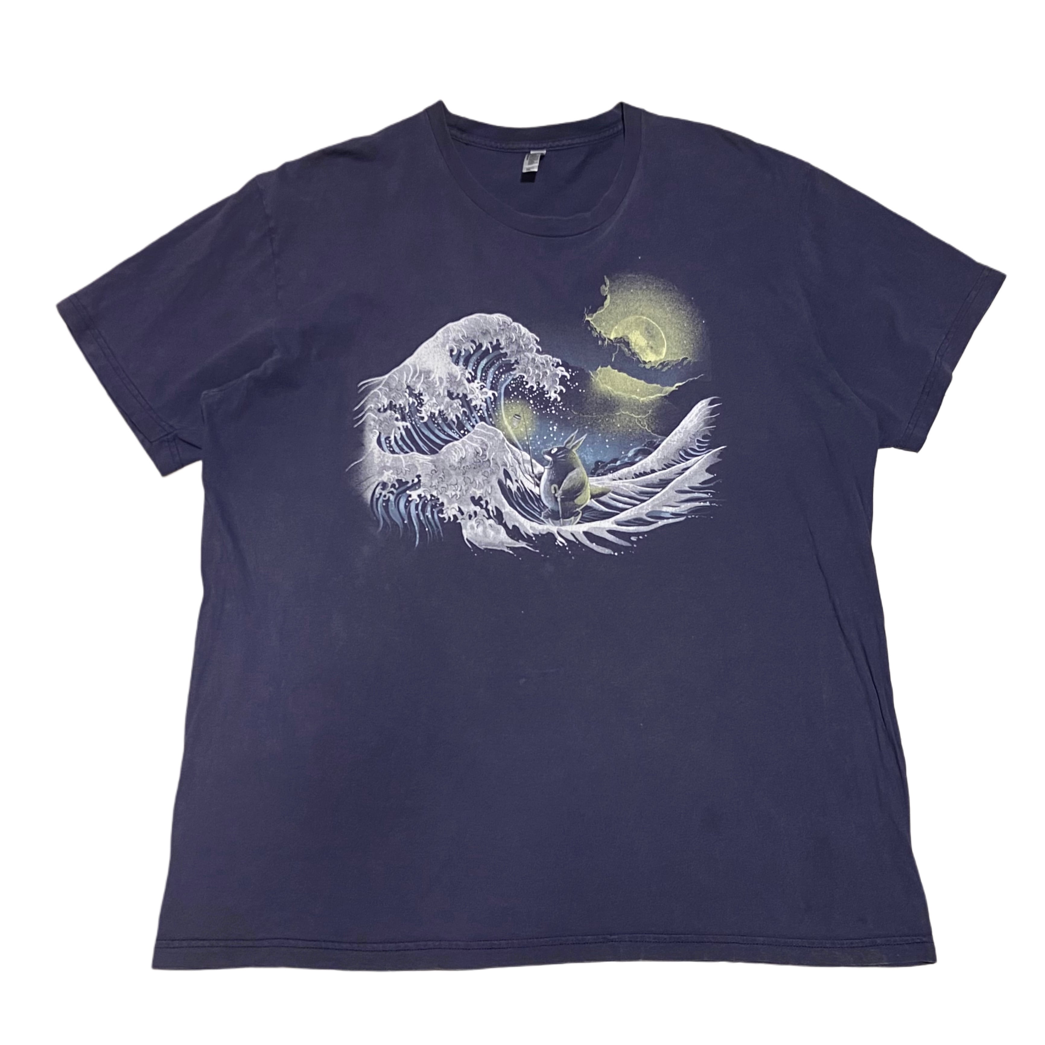 American Apparel アメリカンアパレル ジブリ となりのトトロ×葛飾北斎 プリント Tシャツ ネイビー【2XL】アニメ アート