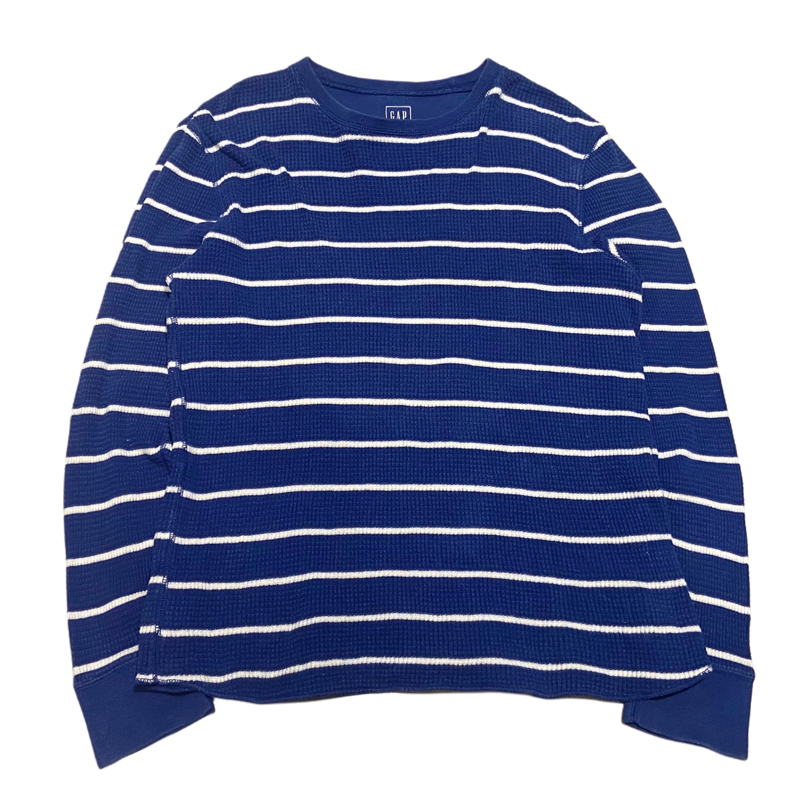 Y2K OLD GAP オールドギャップ ボーダー サーマル カットソー ロンT【L】ブルー×ホワイト