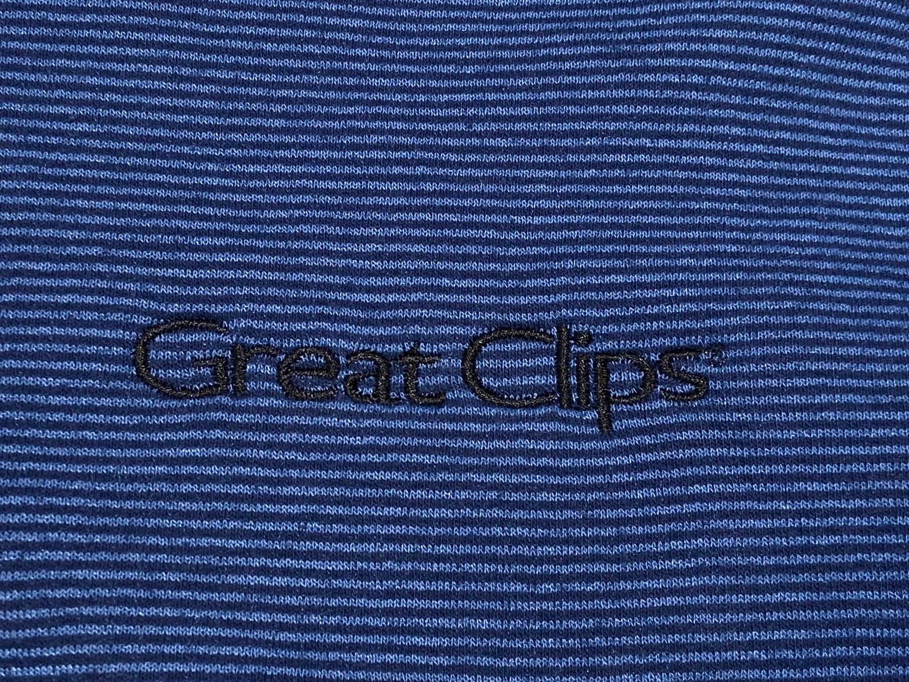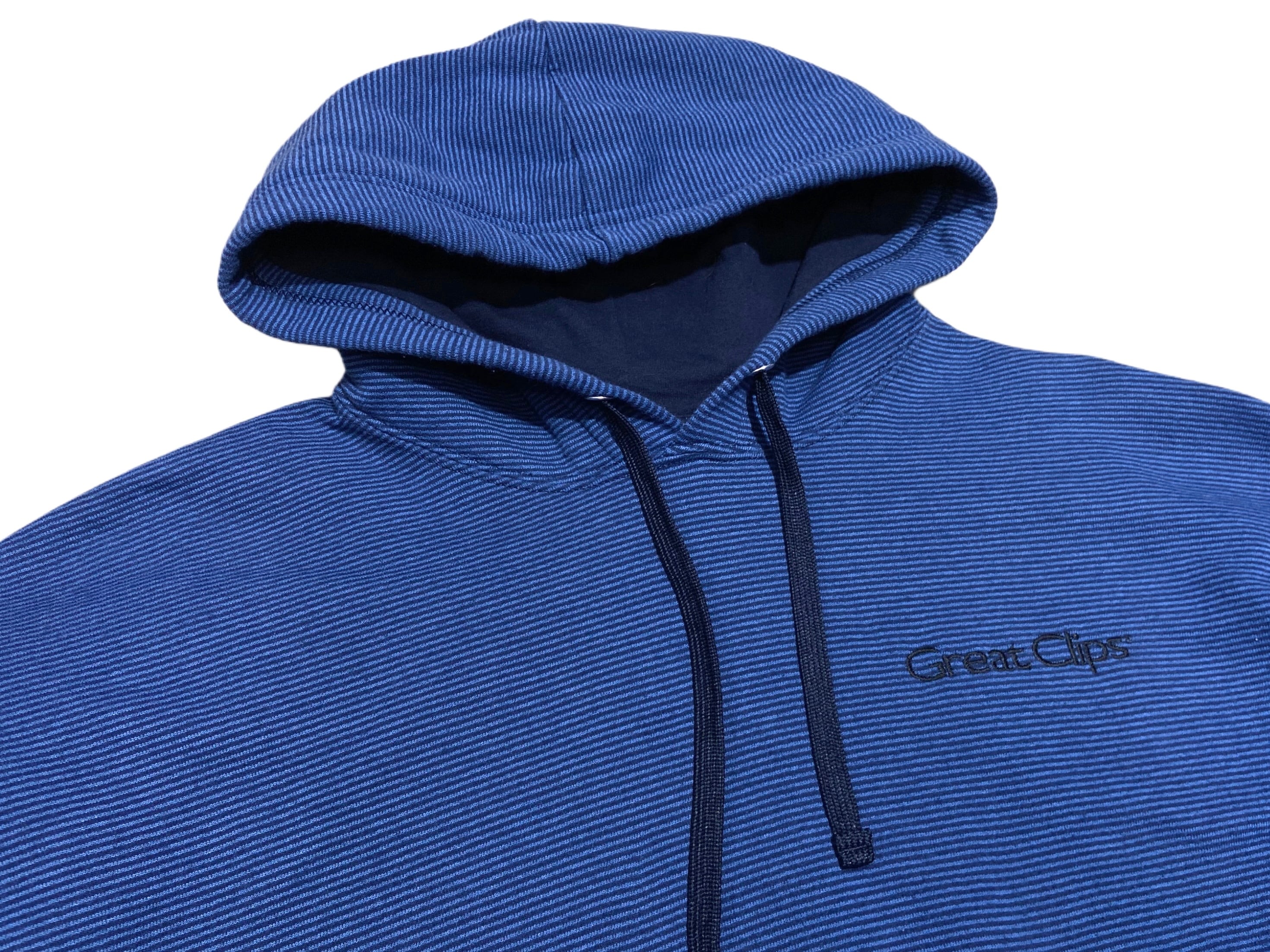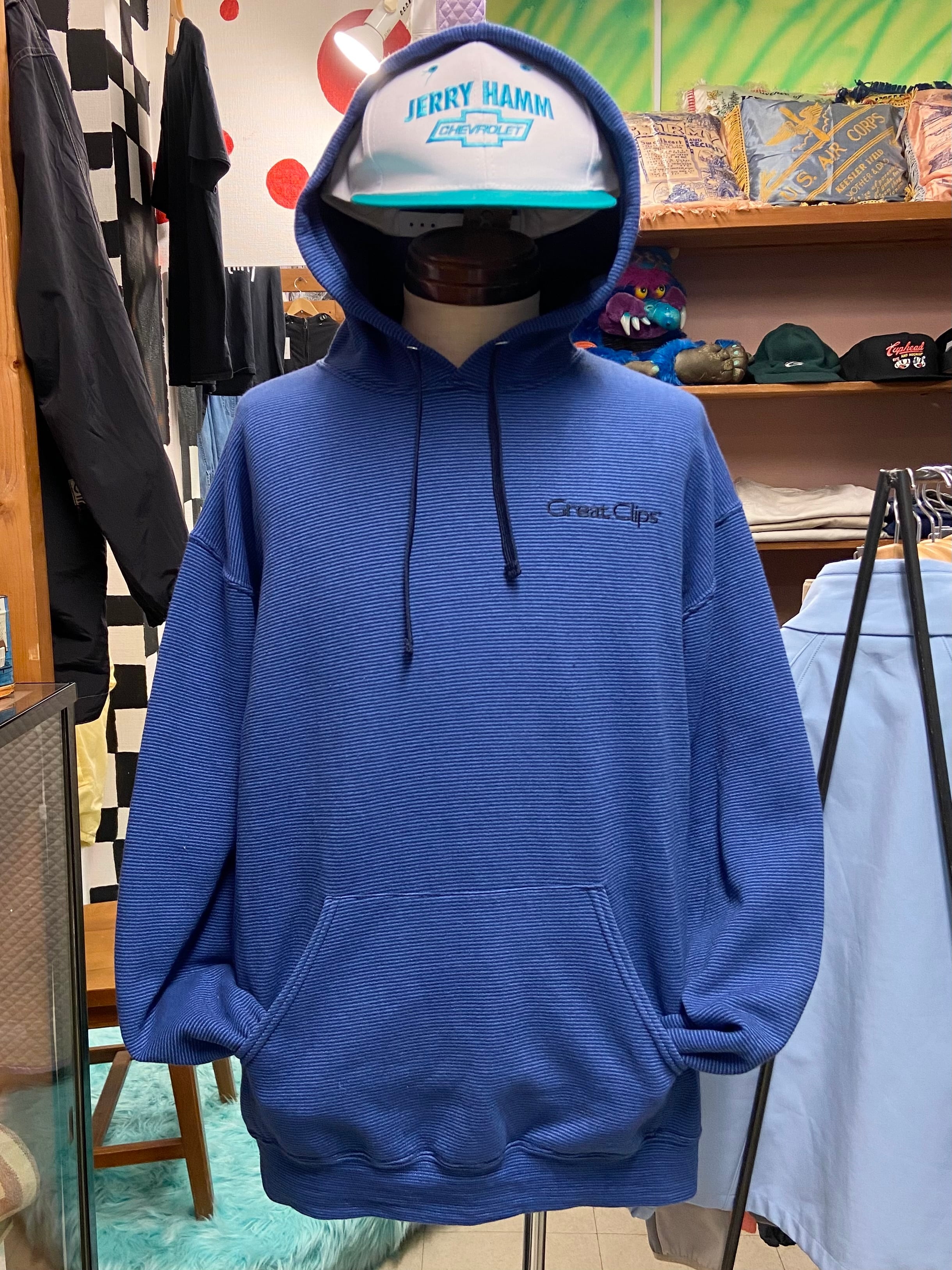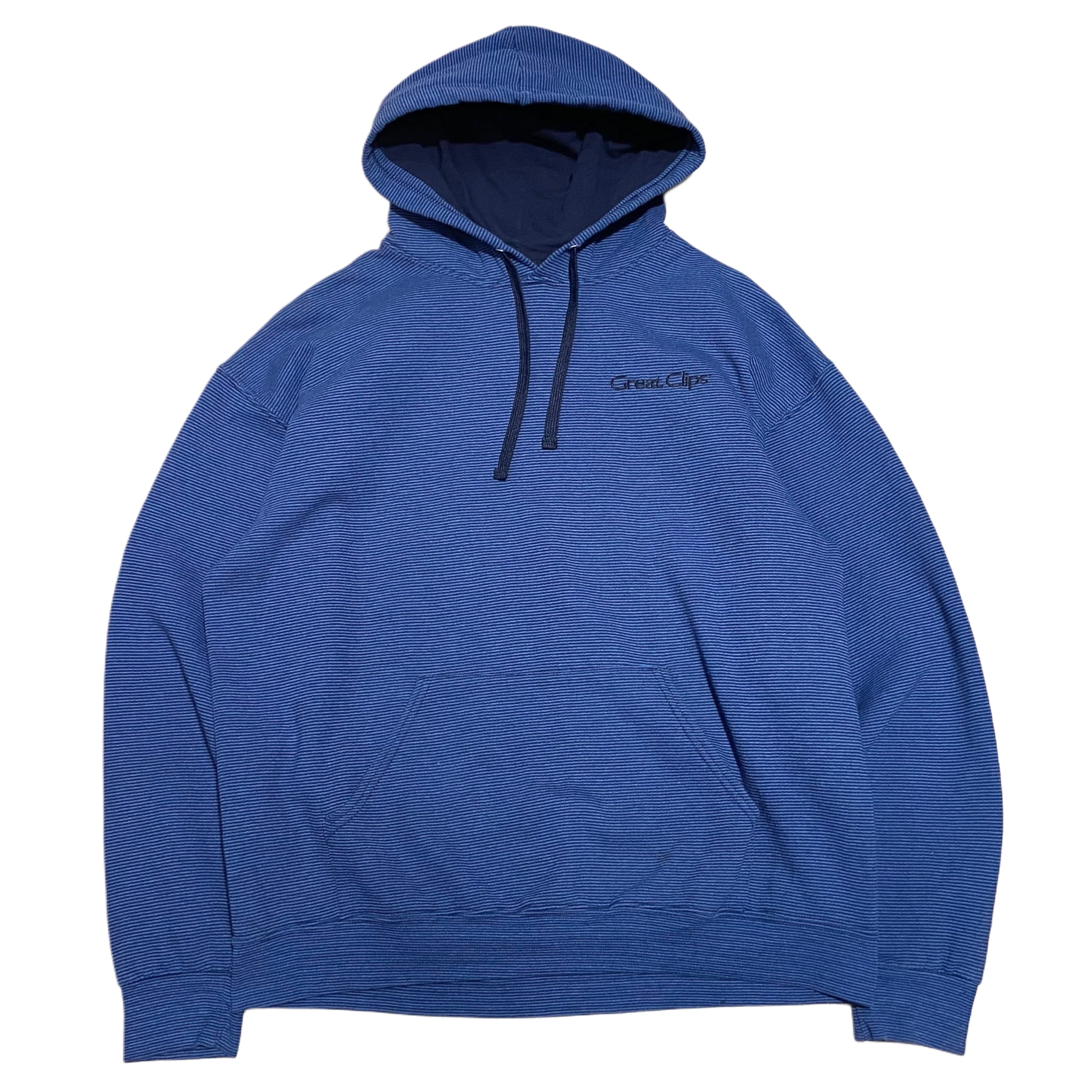 00s Great Clips ロゴ 刺繍 ボーダー スウェット パーカー【L】ブルー×ブラック