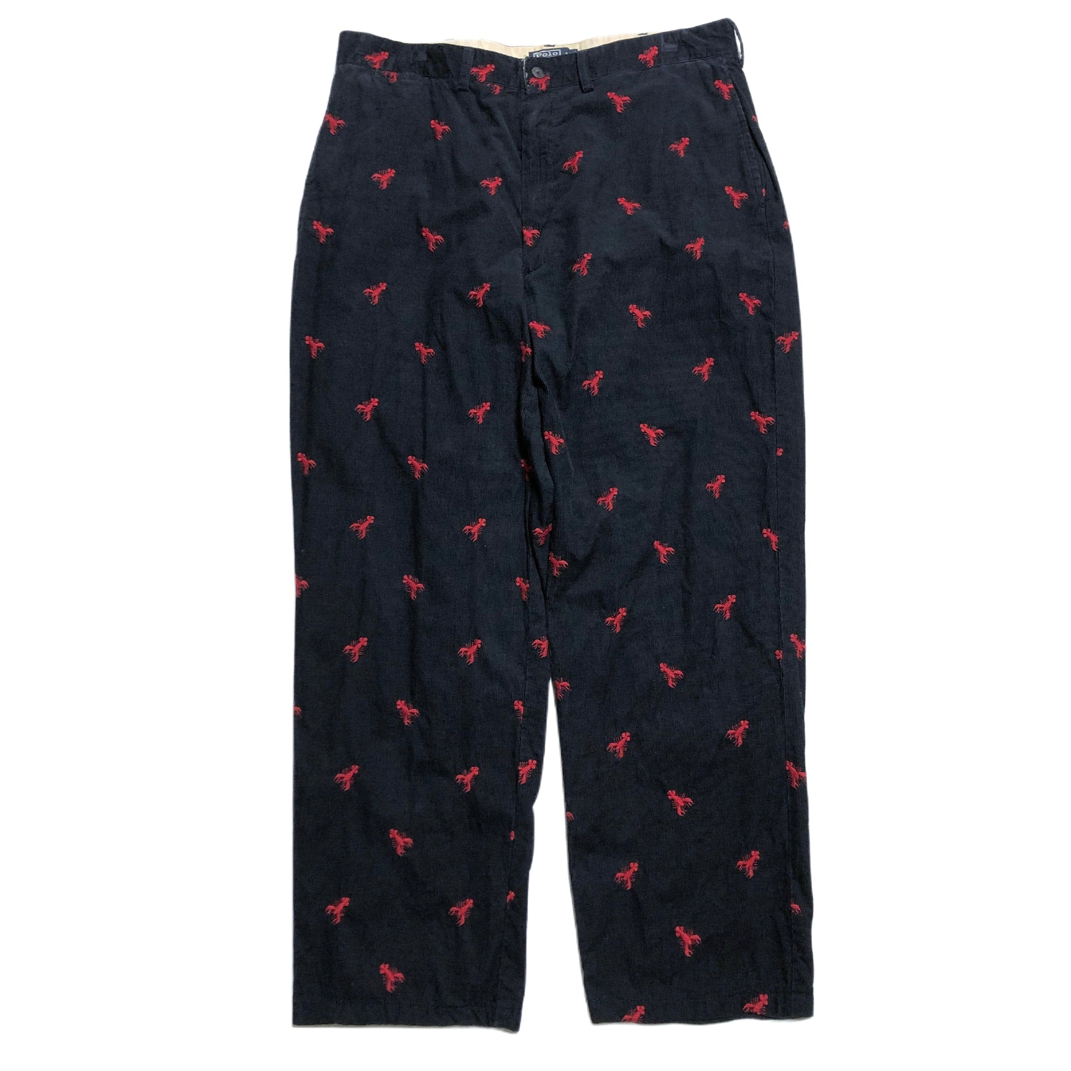 90s POLO RALPH LAUREN ロブスター刺繍 コーデュロイパンツ ネイビー【W37】 ポロラルフローレン RC-033