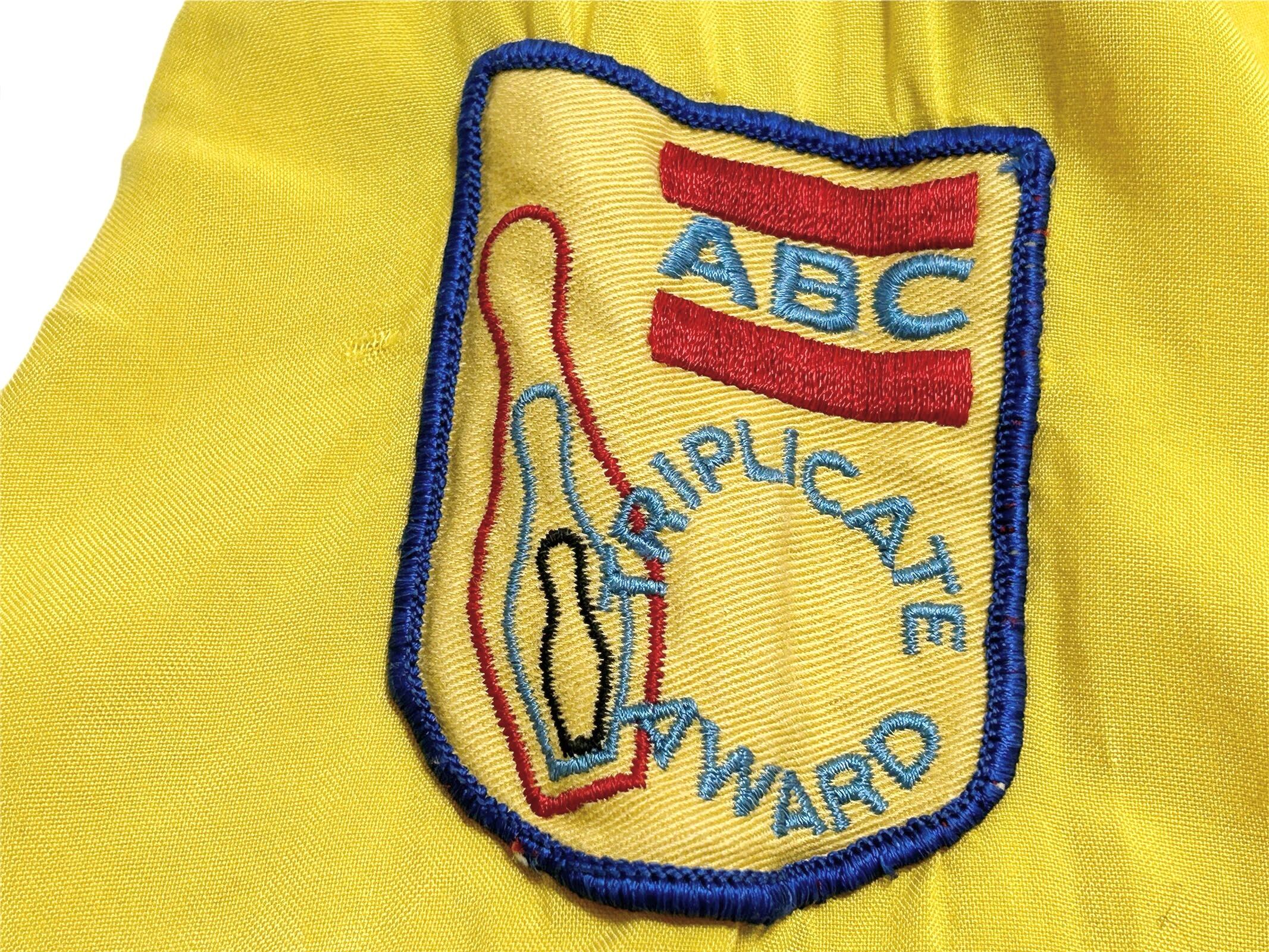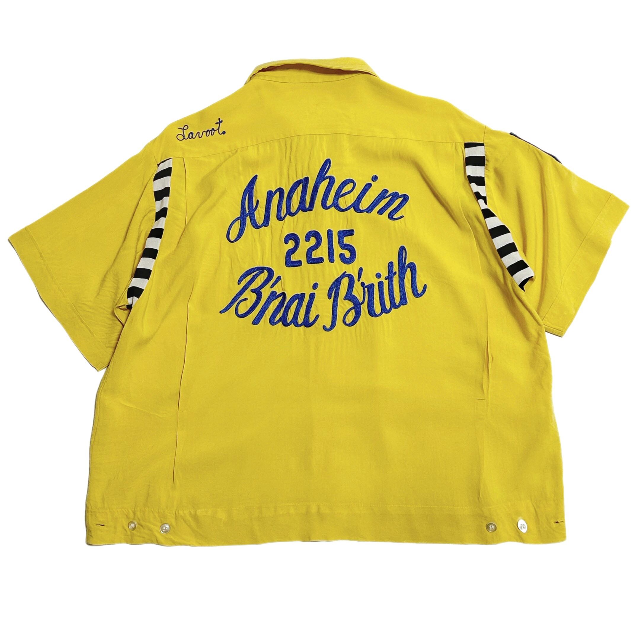60s チェーン刺繍 レーヨン ボーリングシャツ イエロー ボーダー切返し 【16-16 1/2】