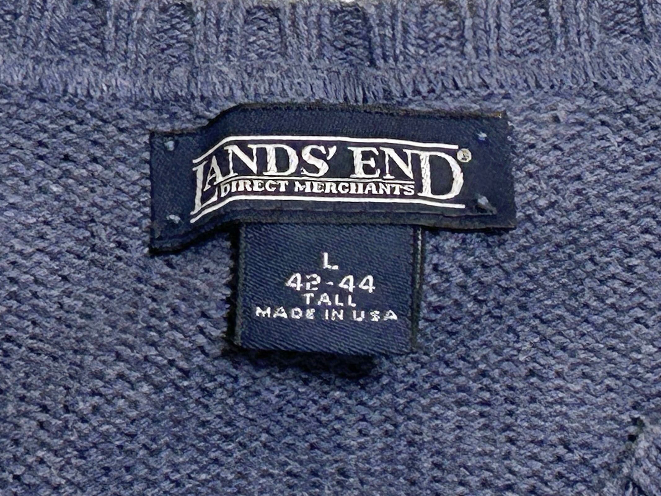 90s LANDS' END ランズエンド コットンニット ベスト ブルー【L】MADE IN USA
