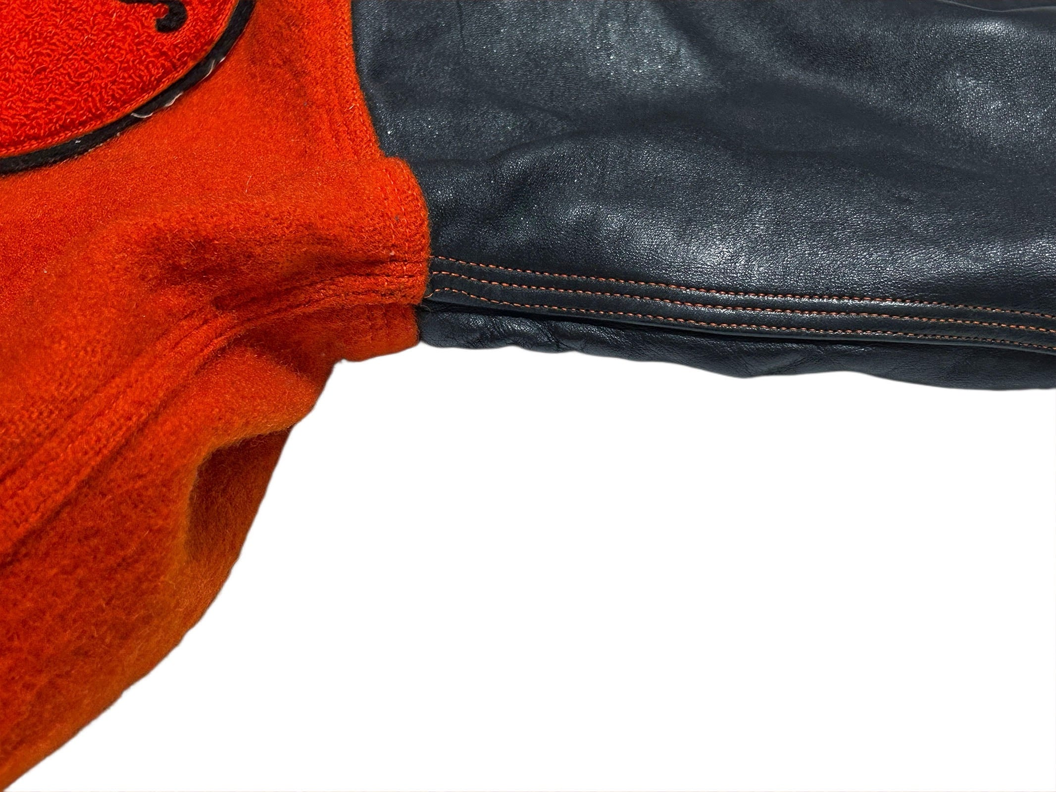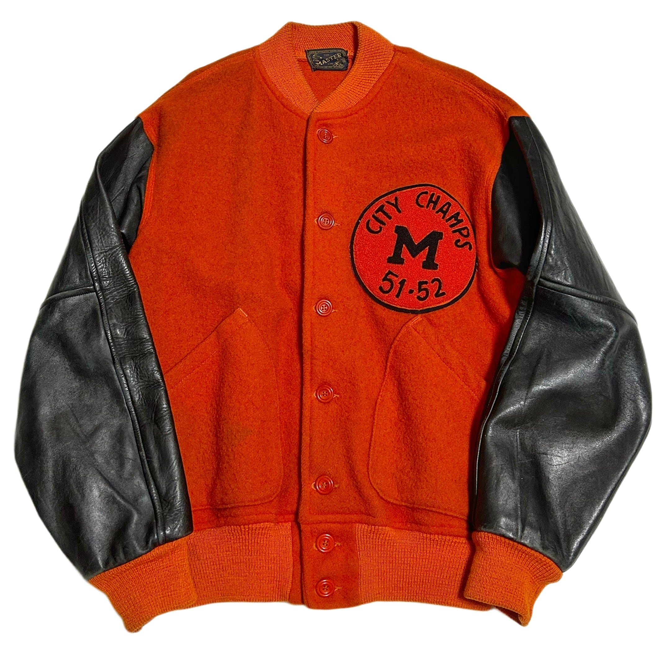 40s MASTER レザー袖 ボタスタ パチポケ スタジャン オレンジ×黒 1951-52【44】
