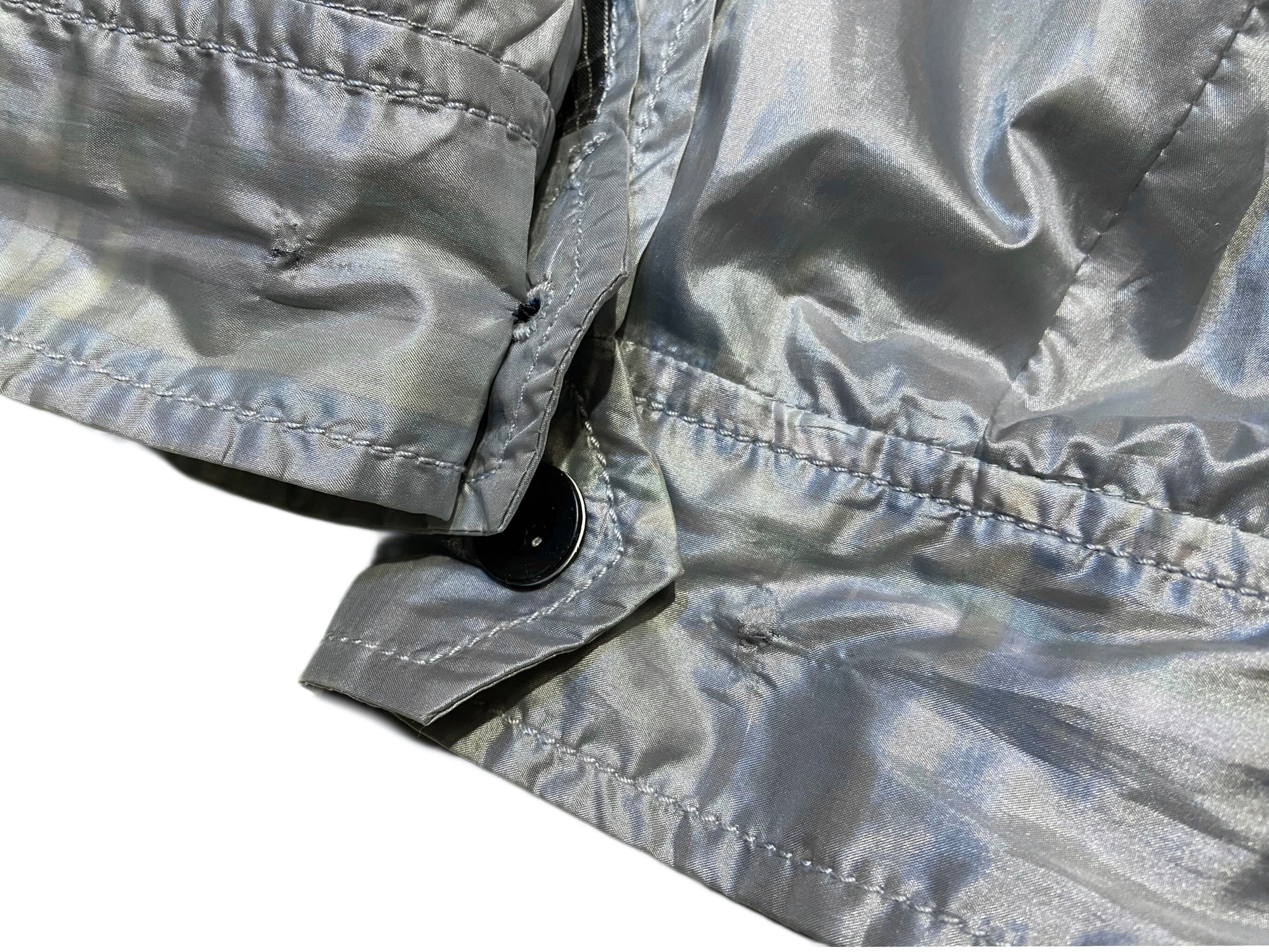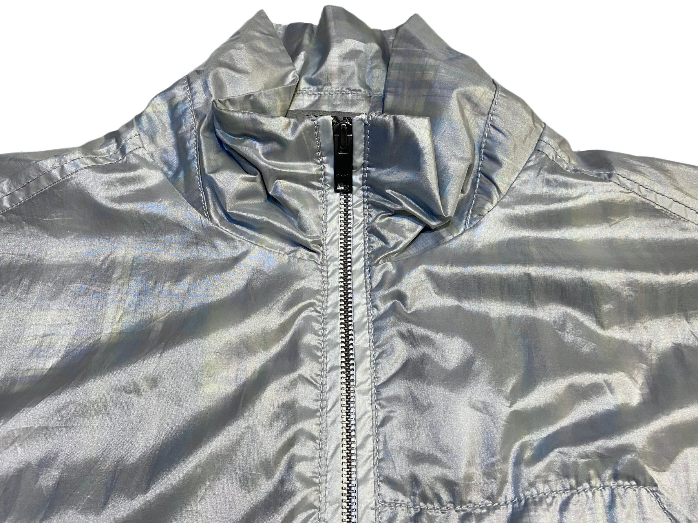 Y2K DKNY 裏地チェック ナイロンジャケット メタリックシルバー 【XL】