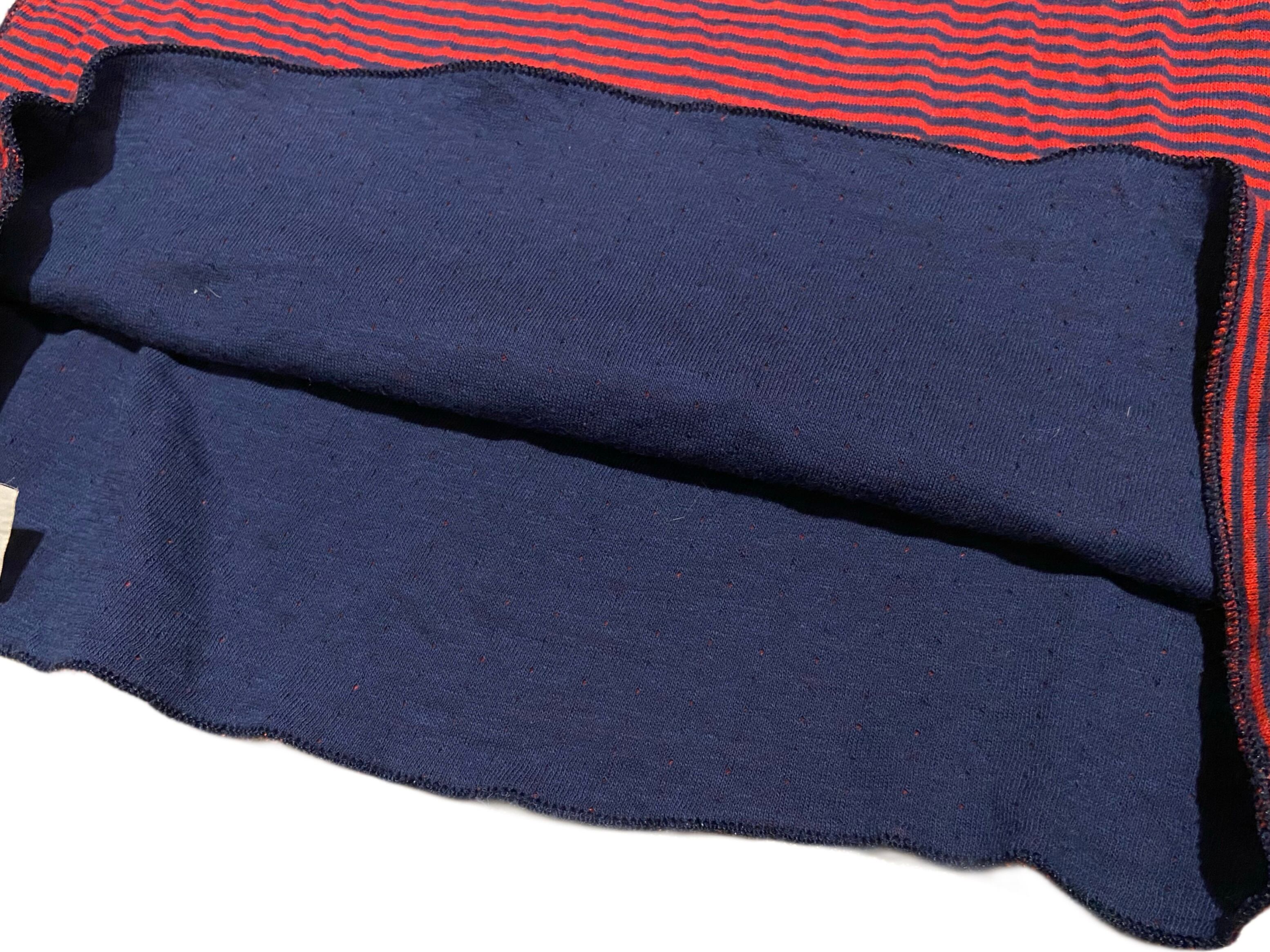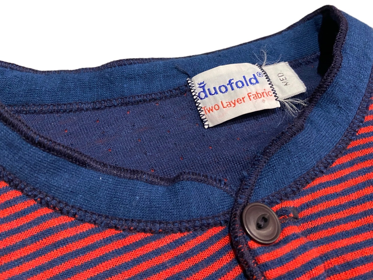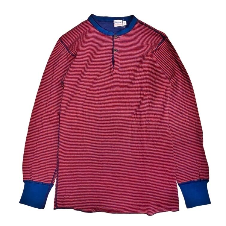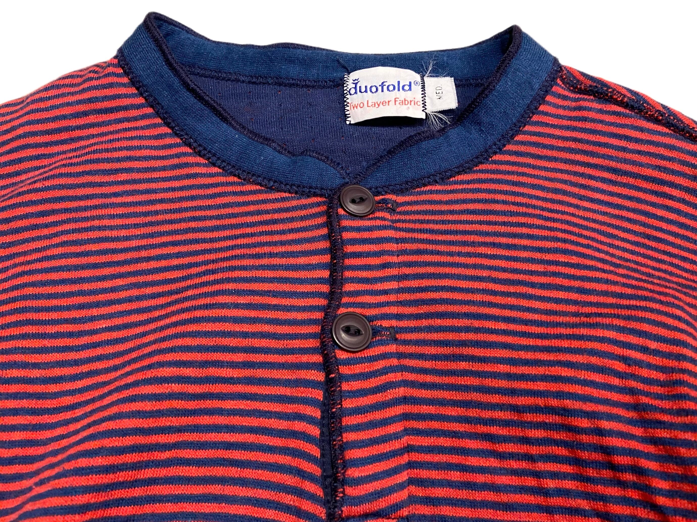 80s Duofold デュオフォールド Two-Layer ヘンリーネック 長袖 Tシャツ ボーダー 【M】レッド×ネイビー