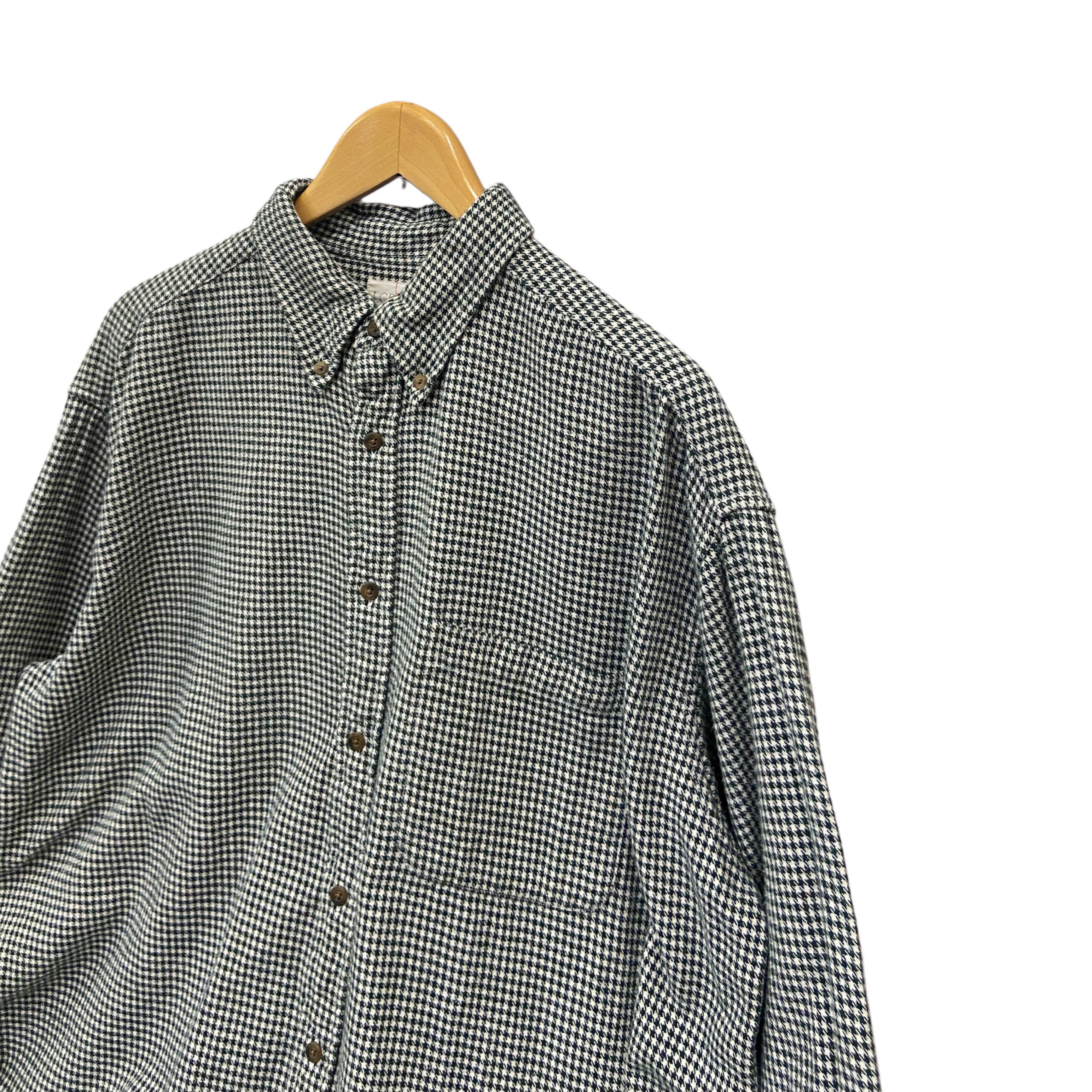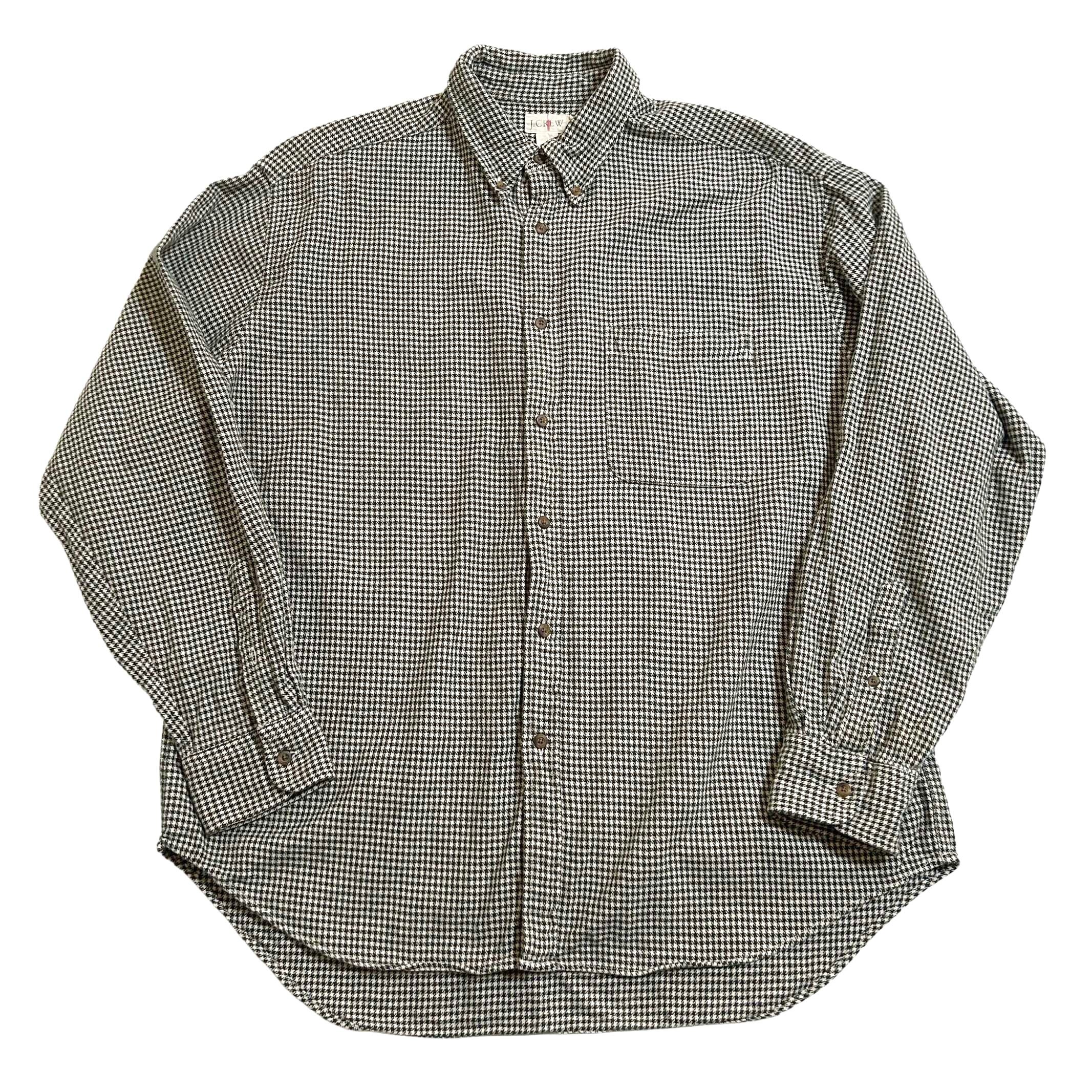 90s J.CREW 巨人タグ ハウンドトゥース 千鳥格子 ネル ボタンダウンシャツ【L】