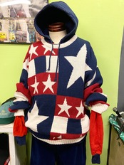 90s LIBERTY リバティー 星柄 スター&ストライプ コットンニット MADE IN USA【L】