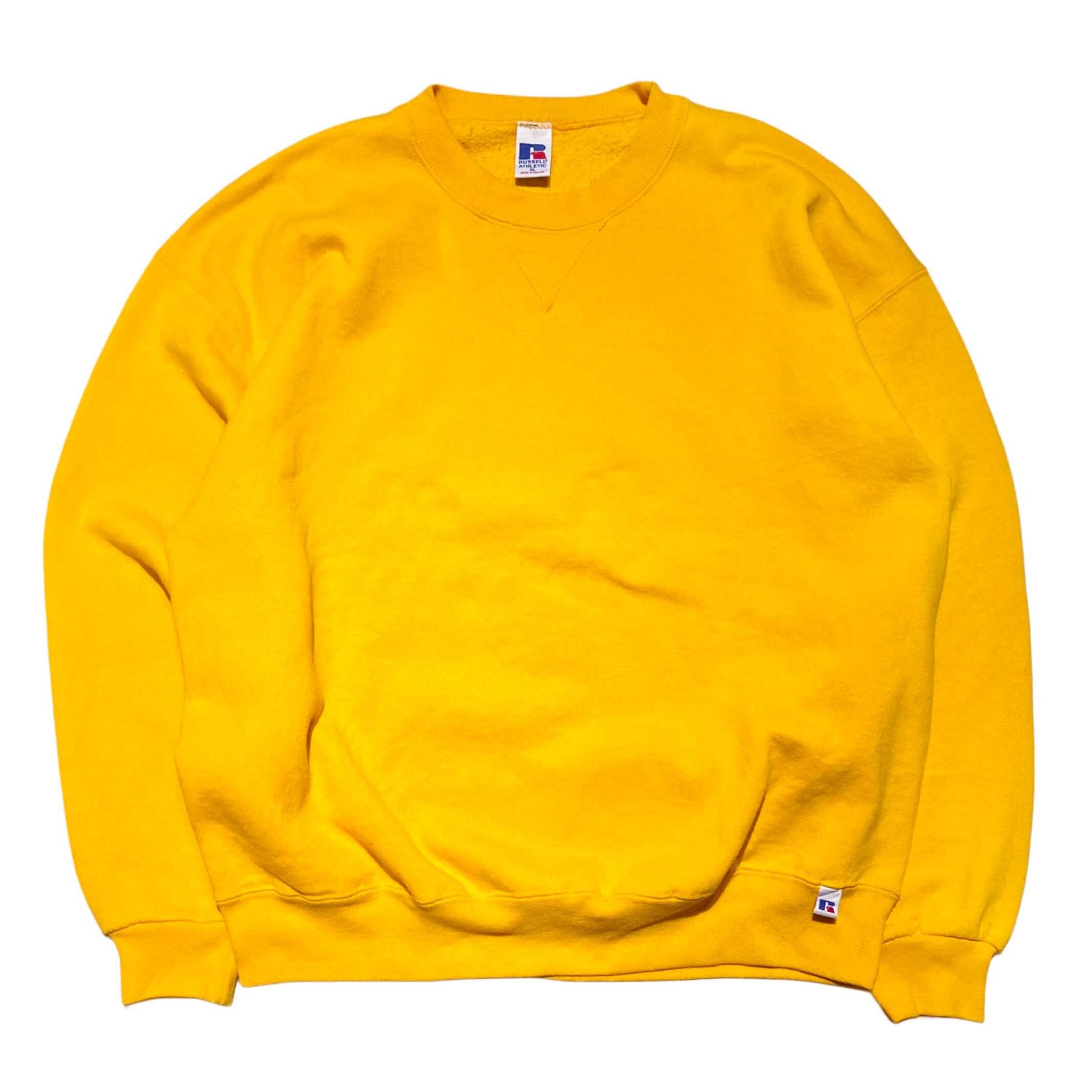 90s RUSSELL ラッセル 前V 無地 ブランク スウェット イエロー【XL】 MADE IN MEXICO